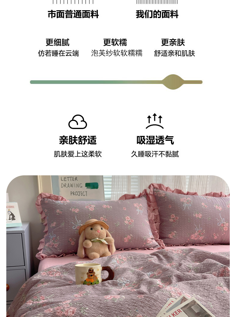 (总)迪梦姿家纺 2026新款高克重泡芙纱泡泡纱床单款四件套系列,兔仔花田,春日甜桃心米,纯宅熊,躲猫猫,花野兔眠,灰樱桃,旧街星星,猫咪集粉,莓系花伐,描线小猫咖,木马小花团,浅沙花影黄,浅沙花影蓝,田园兔,甜喵块块,甜心咖絮,甜心木马卷,小兔裙边,星野蝴蝶结,悦悦小兔,只闻花香,紫雾花蝶集