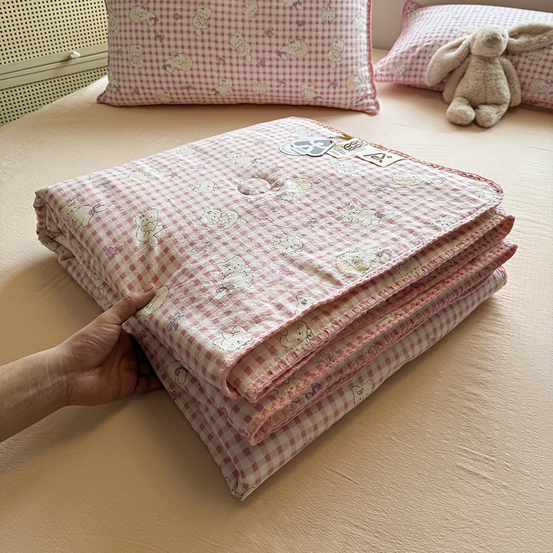 (总)晚爱 2026新款泡芙棉双层纱夏被四件套小清新泡泡纱夏被四件套,1软萌星,2星宝贝,3珍珠奶茶,4豹纹凯蒂,5喵星人,6格纹狗,7芋泥波波,8费尔岛小狗,9蓝雪花,10春风拂梦,11甜心小兔 主,12大熊猫