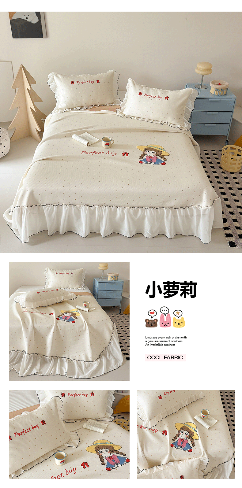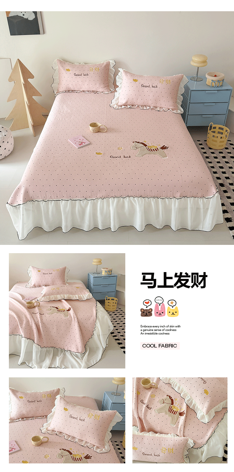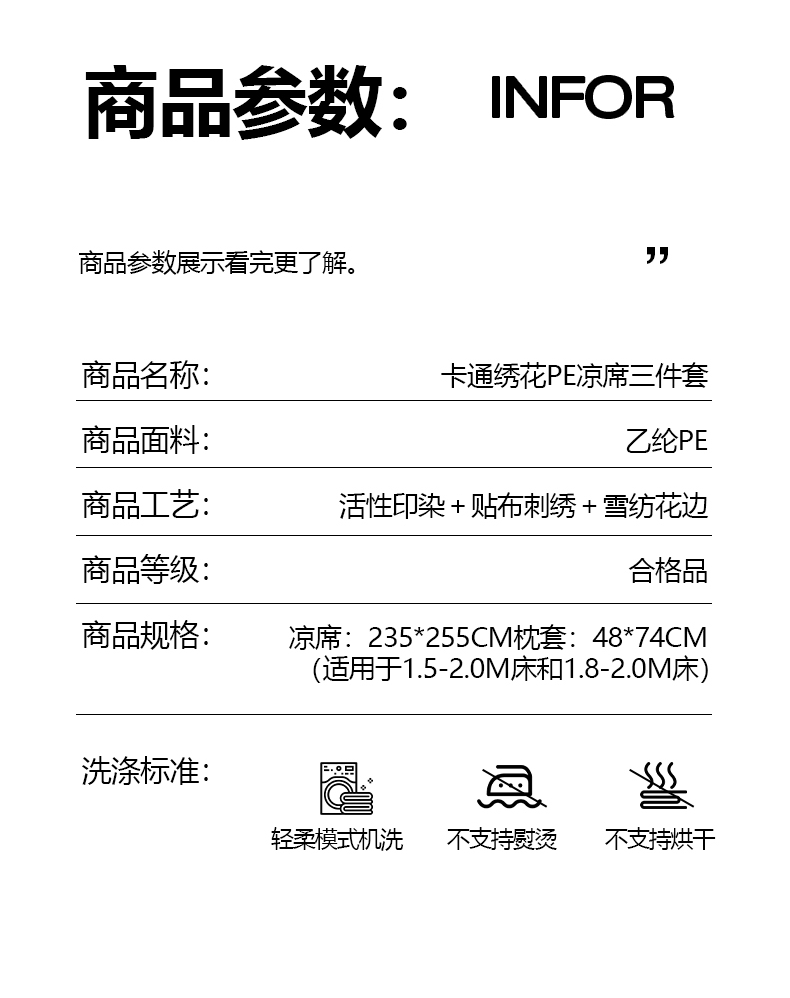 商品名称:吾欢心 2026新款卡通绣花高克重乙纶PE凉席席子三件套床裙款 童趣时光