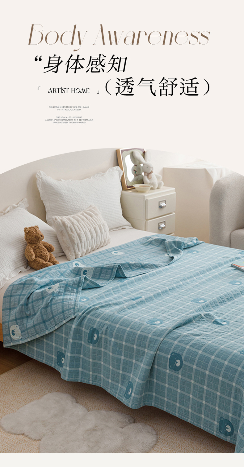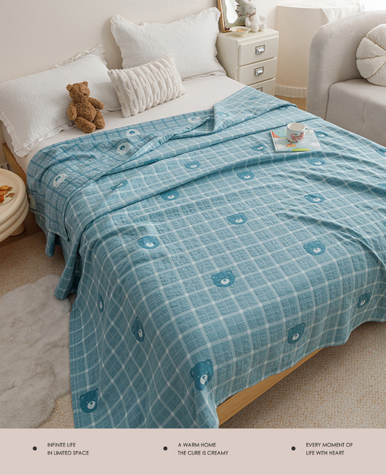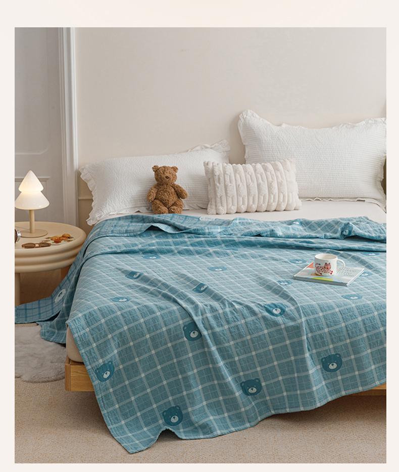悦然毛巾被 2026新款色织水洗棉盖毯安心棉床盖全棉纱布毛巾被夏被夏凉被空调被 蓝格熊语