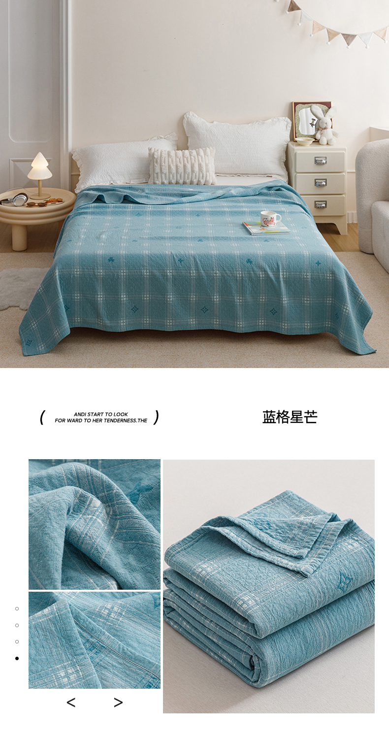 (总)悦然毛巾被 2026新款色织水洗棉盖毯安心棉床盖全棉纱布毛巾被夏被夏凉被空调被,组合图仅供展示不可下单,蓝格萌马,蓝格小狗,蓝格心语,蓝格星芒,蓝格熊语