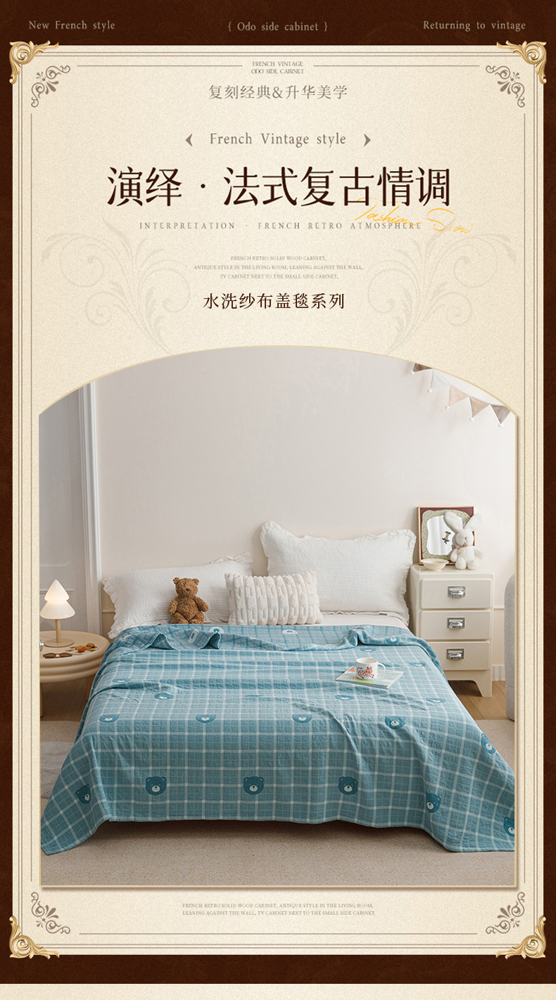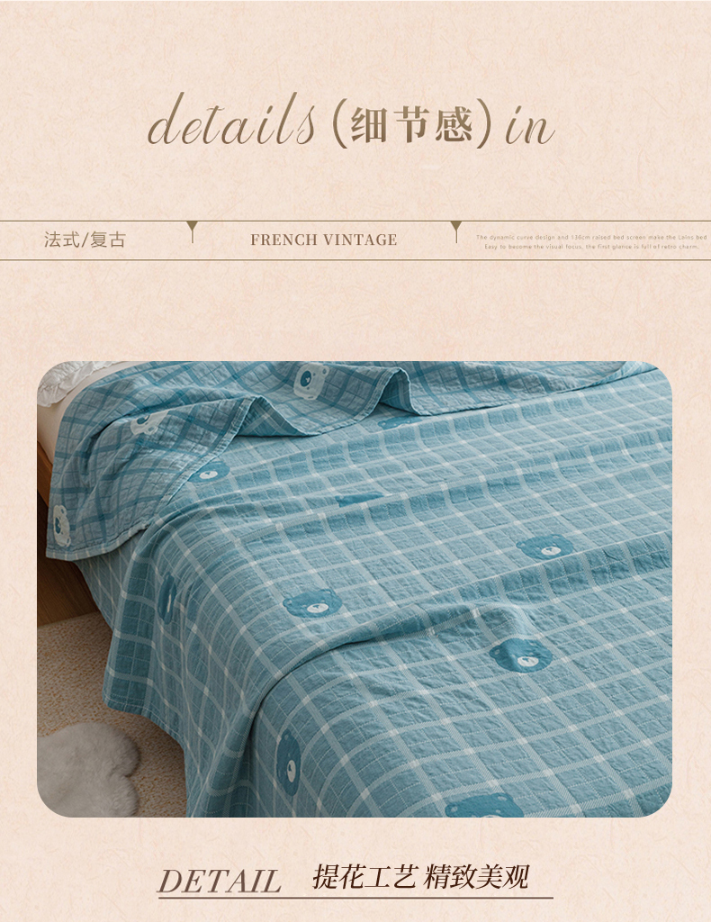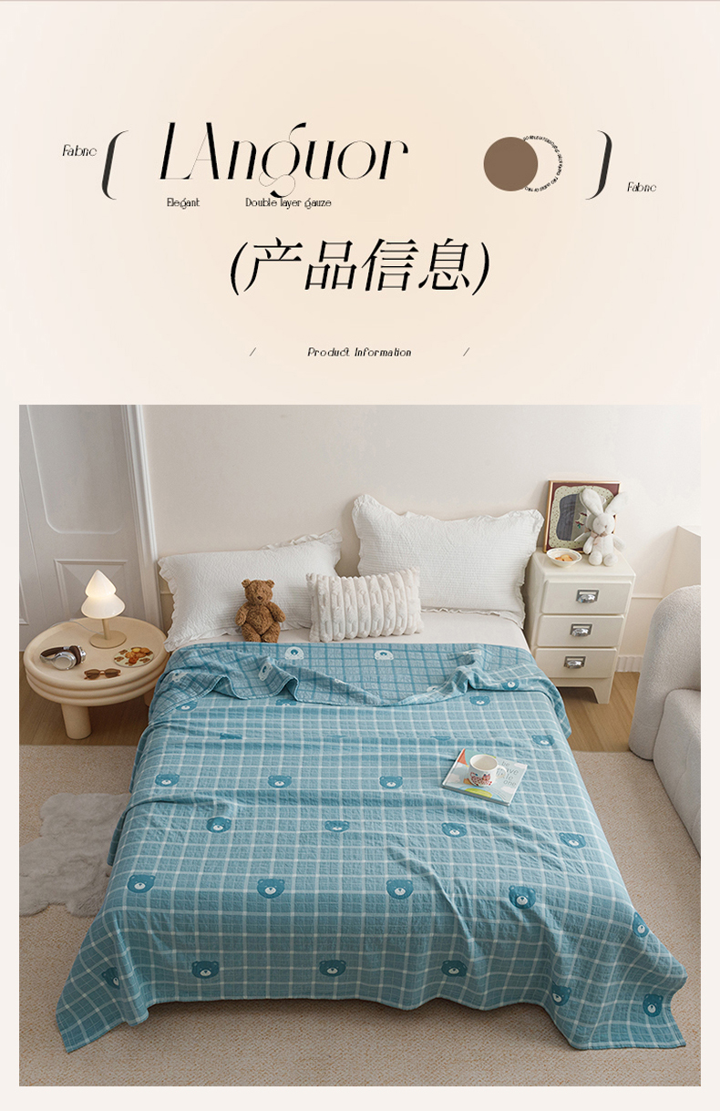商品名称:悦然毛巾被 2026新款色织水洗棉盖毯安心棉床盖全棉纱布毛巾被夏被夏凉被空调被 蓝格熊语