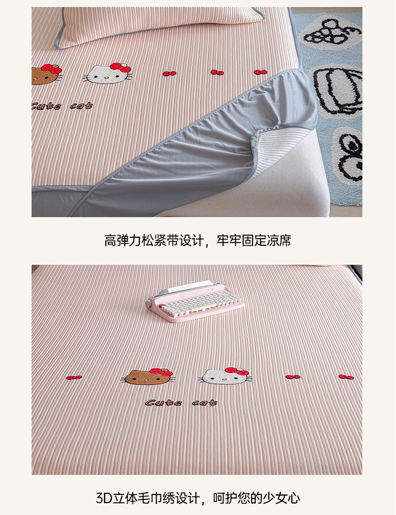 (总)暖生活 2026新款3DMAX超凉感原创PE冰丝软席子凉席-床笠款,组合图仅供展示不可下单,蝶语甜喵,粉条KT,蜜蜂小熊,奶蓝星兔,茄子企鹅,小狗乐园