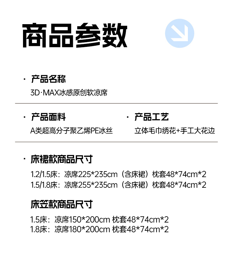 商品名称:暖生活 2026新款3DMAX超凉感原创PE冰丝软席子凉席-床裙款 茄子企鹅