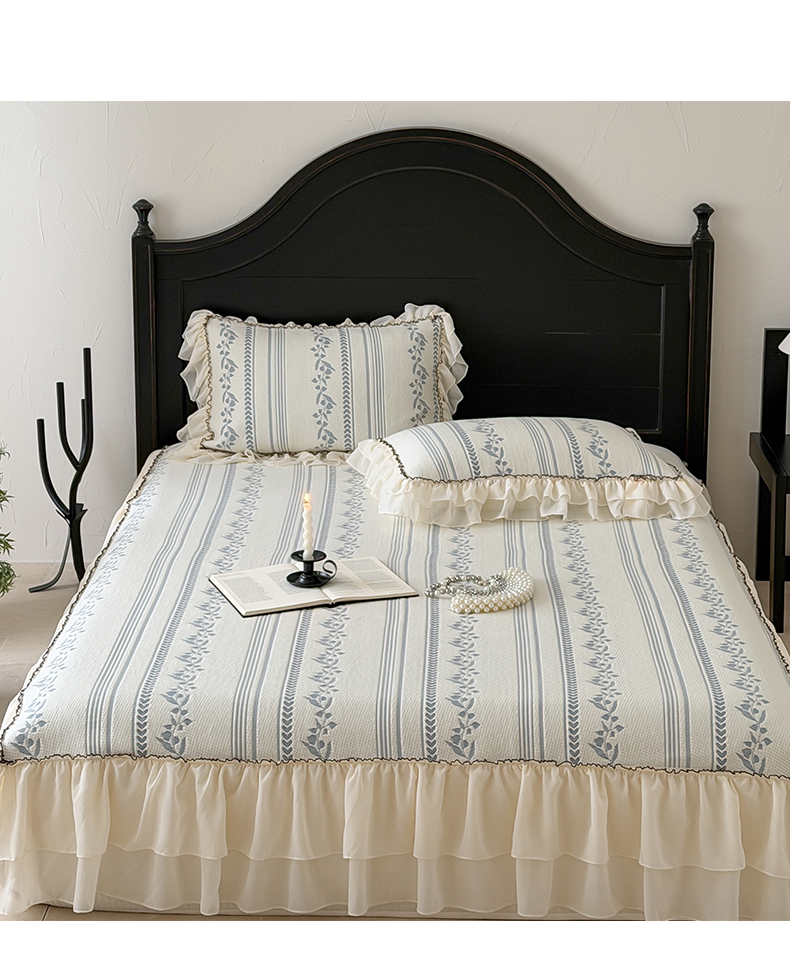 (总)山茶家居-原创设计(原山茶家纺) 2025新款全棉夹棉床裙,白色,粉色,奶黄,天蓝