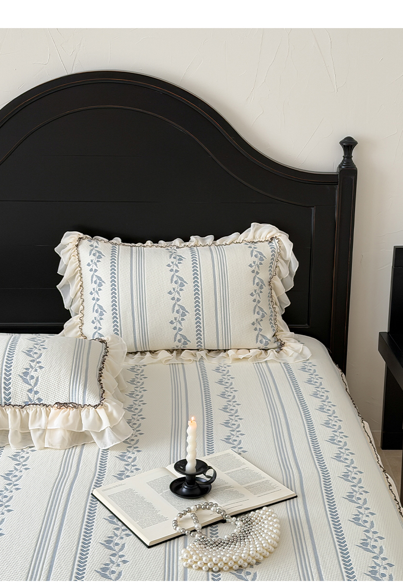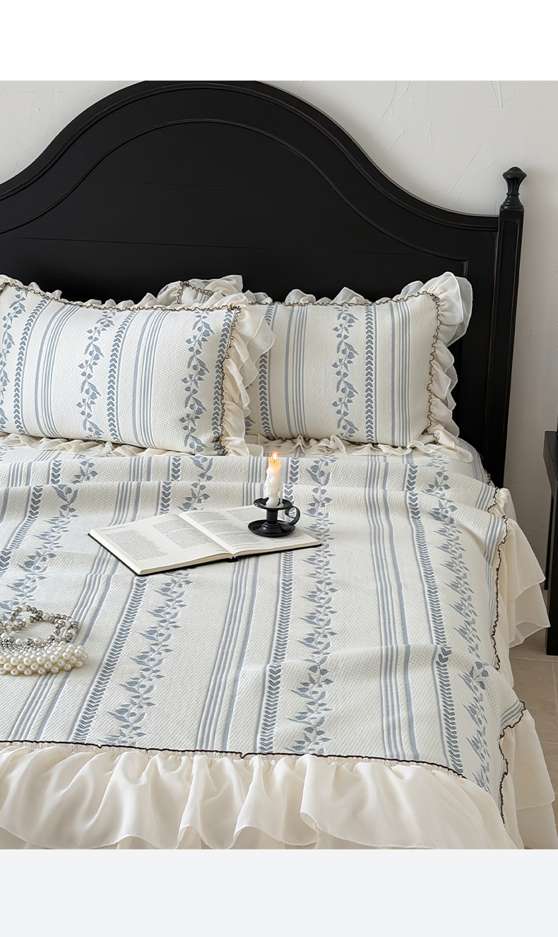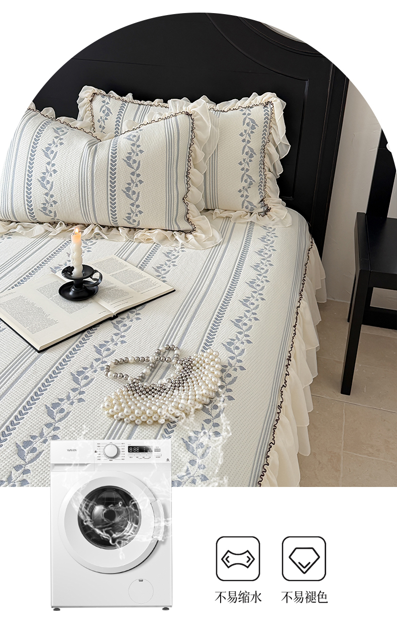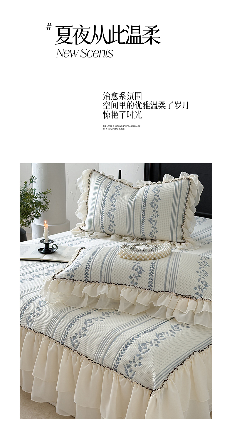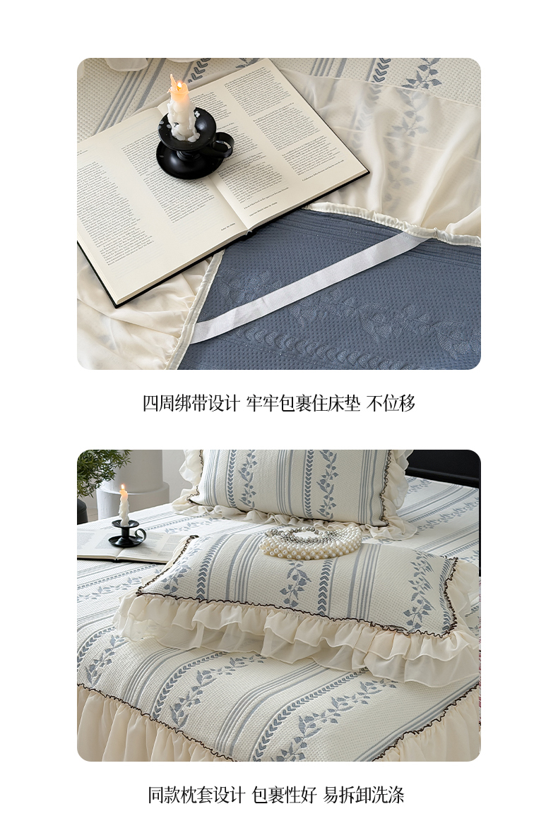 商品名称:山茶家居-原创设计(原山茶家纺) 2026新款A类提花华夫格床盖款凉席三件套-罗马假日 罗马假日-深蓝