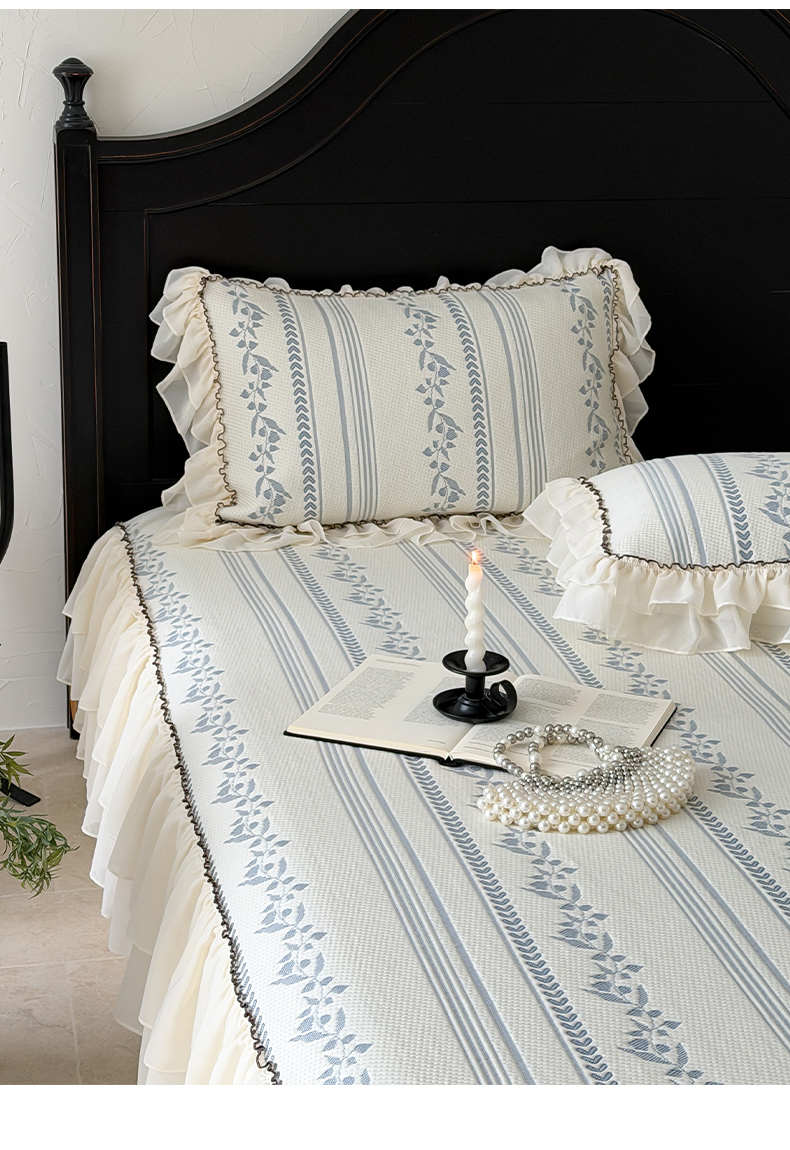 山茶家居-原创设计(原山茶家纺) 2026新款A类提花华夫格床盖款凉席三件套-罗马假日 罗马假日-深蓝