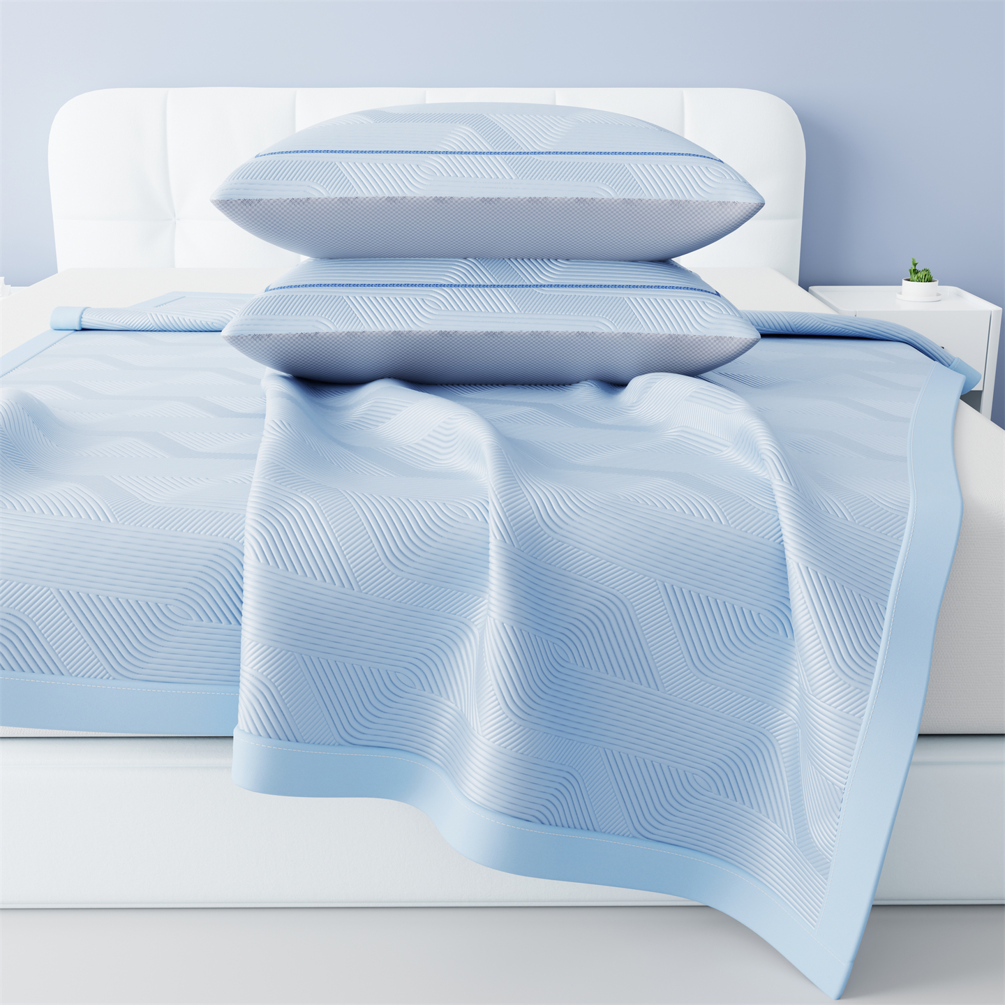 商品名称:怡源梦 2026新款PE高分子加厚三明治冰豆豆水波纹全包包边单枕套枕套单件 水波纹-粉色