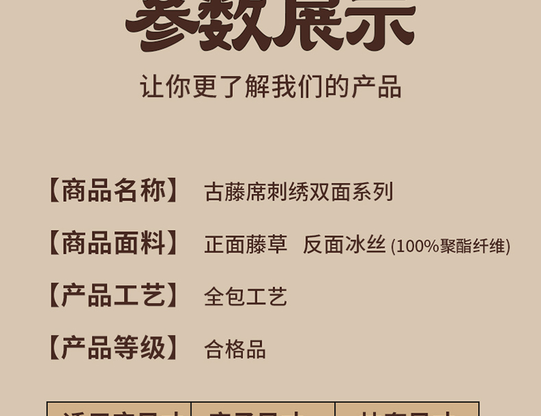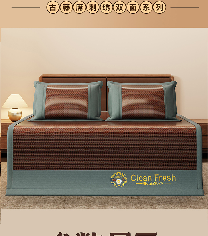 当前位置: 91家纺网 > 商品网购 > 床上用品 > 凉席 > 藤席 > 怡源梦 2026新款古藤席刺绣双面系列 古藤席-深咖