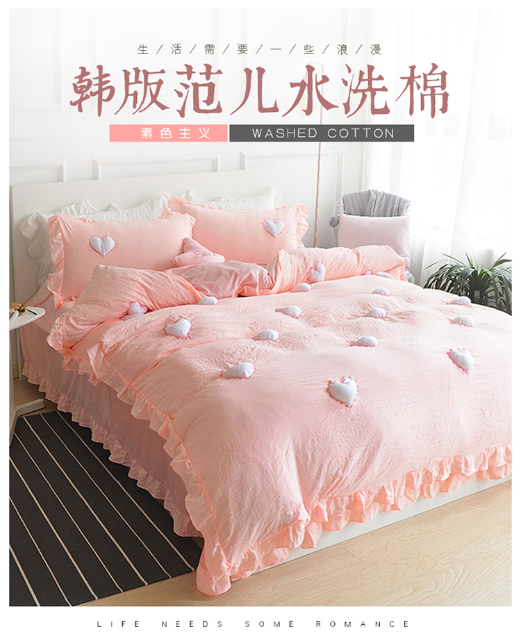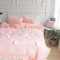 艾米家居 2025新款韩版双层花边轻奢浮雕系列水洗冰丝四件套 粉花边,粉花边