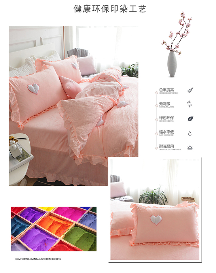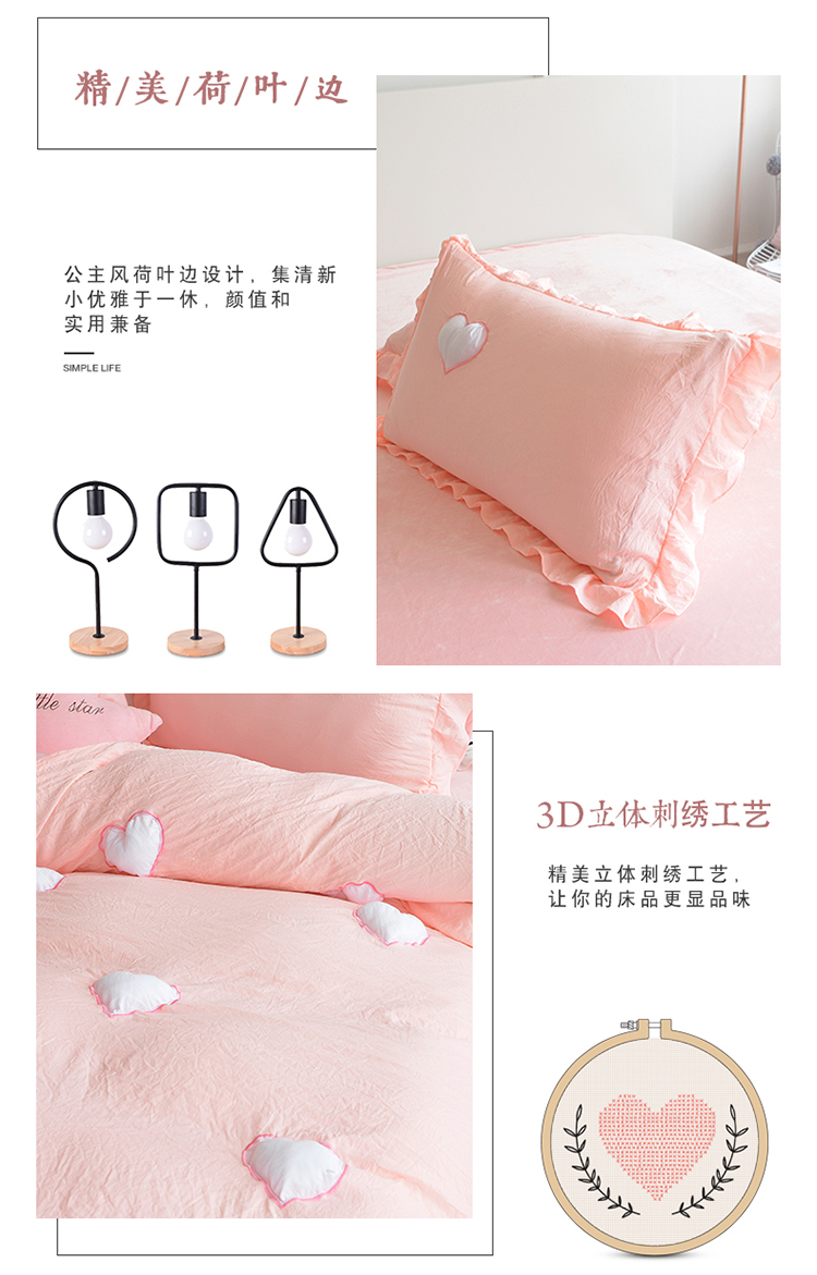 艾米家居 韩版公主风水洗棉+水晶绒立体绣四件套 珊瑚玉
