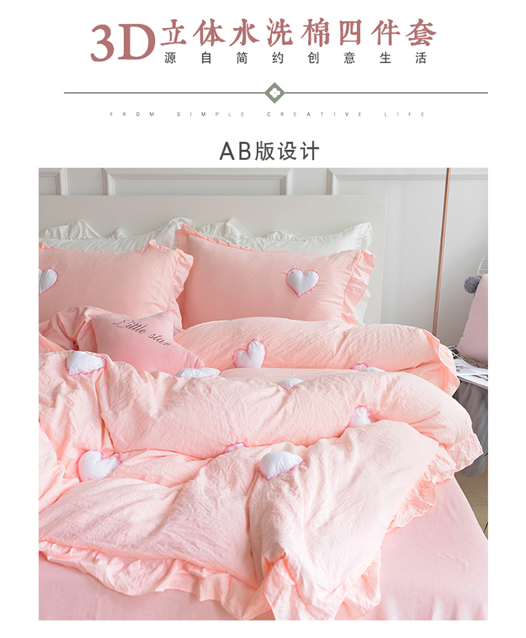 (总)艾米家居 2025新款水洗真丝刺绣四件套-爱心系列,爱心白,爱心豆沙,爱心粉,爱心黄,爱心水绿