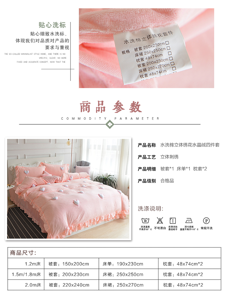 商品名称:艾米家居 韩版公主风水洗棉+水晶绒立体绣四件套 珊瑚玉