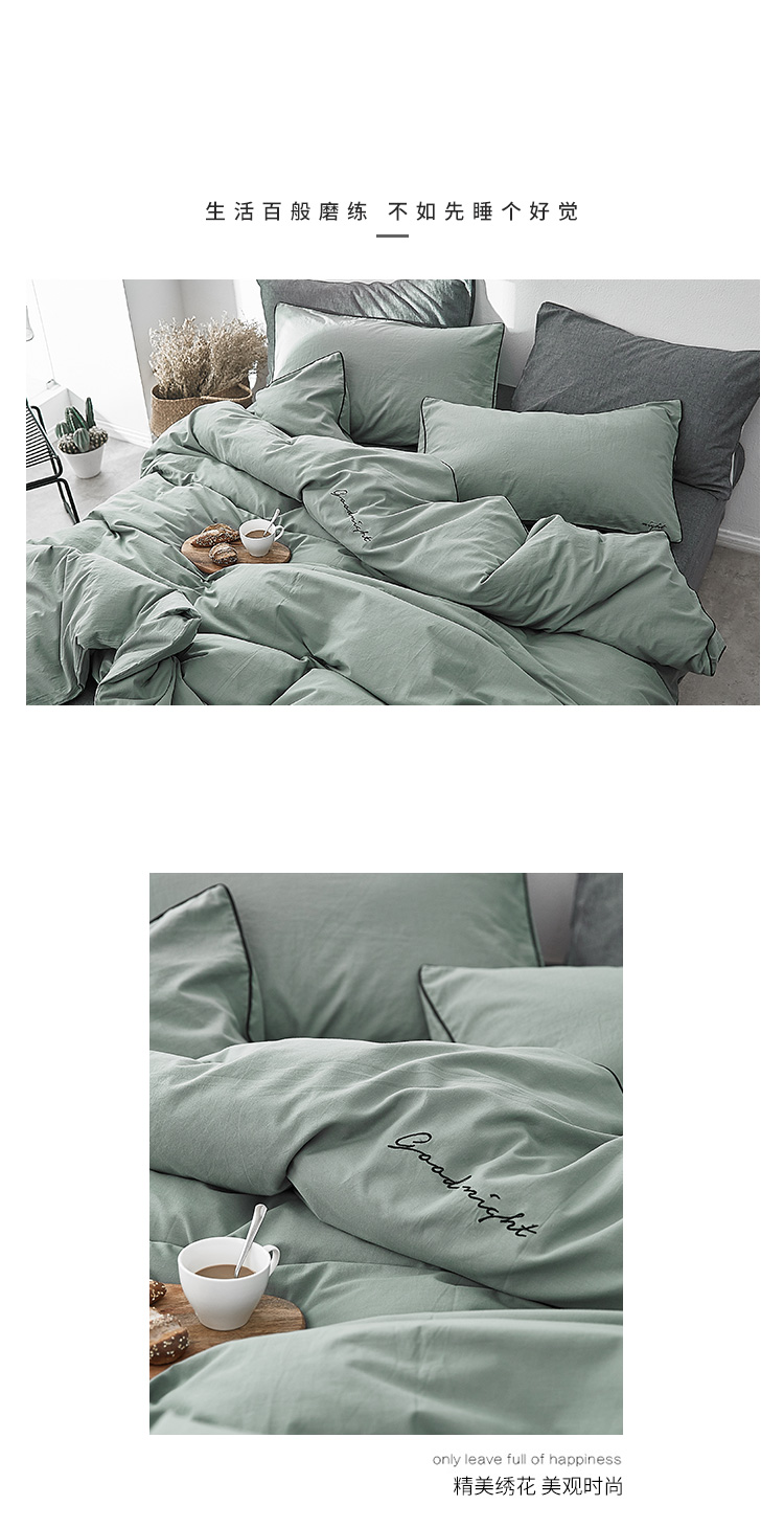 商品名称:2018秋冬新款色织简易绣四件套 秀-墨绿