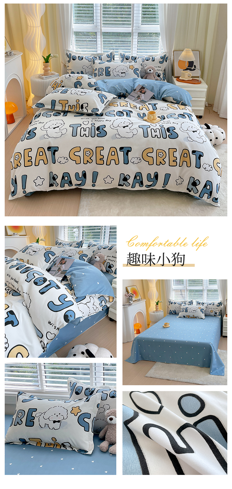 (总)好亿来家纺 2025新款水洗云朵棉大版枕套四件套单品系列-四件套,背包狗,波点狗,彩色波点,可爱猫,快乐玩伴,快乐小熊,浪漫花园,萌宠,派对猫,普罗旺斯,星空兔,幸运小狗,熊猫乐园,字母宝贝