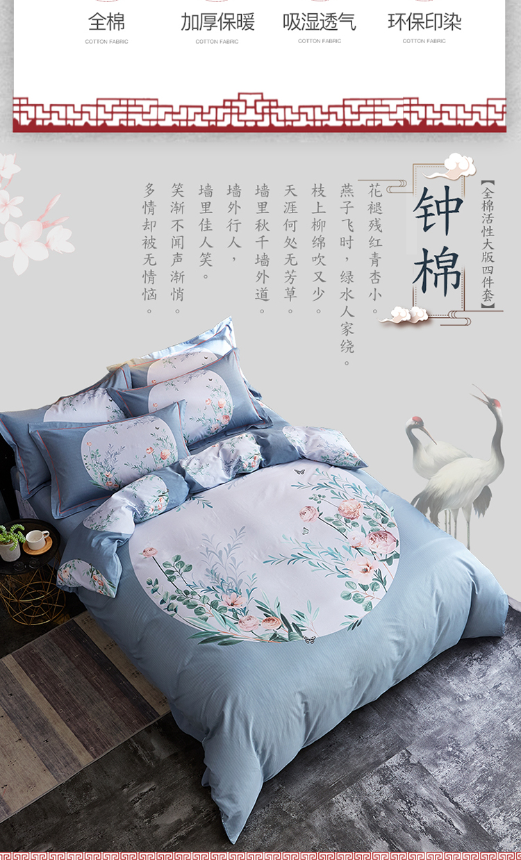 雲归梦 2019全棉活性大版中国风花卉四件套 御景轩