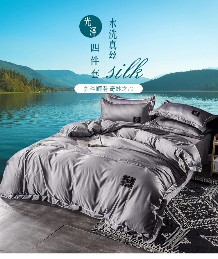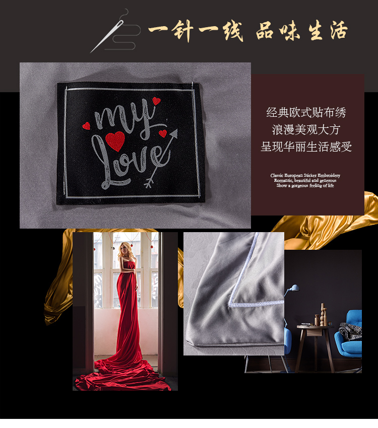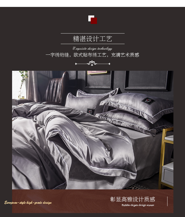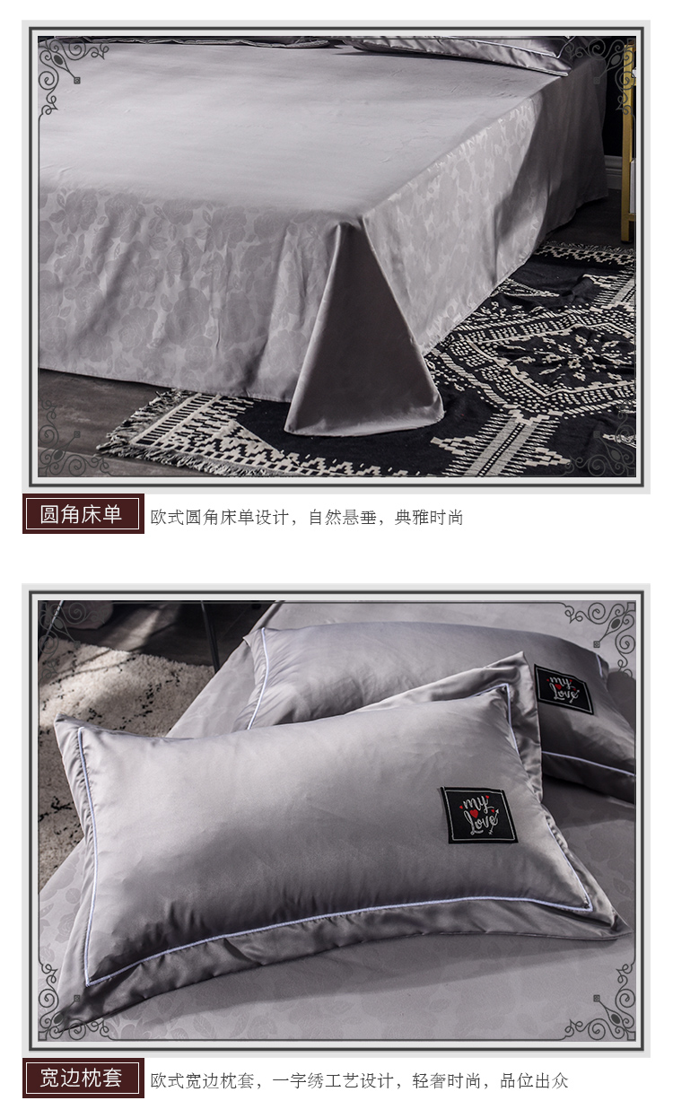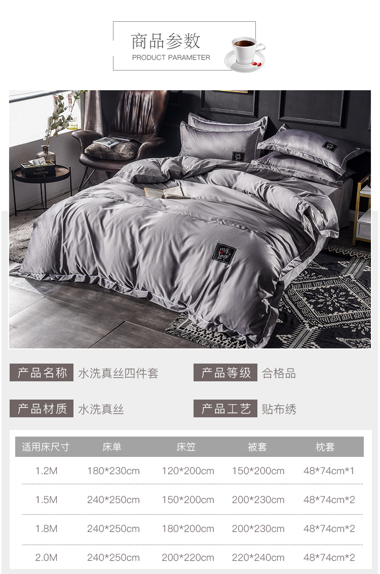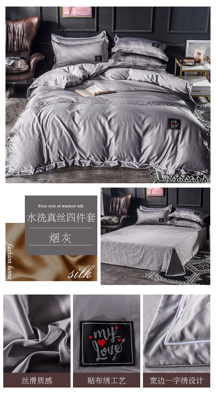 商品名称:欧冠 2019新款水洗真丝贴布绣四件套 床单款 烟灰