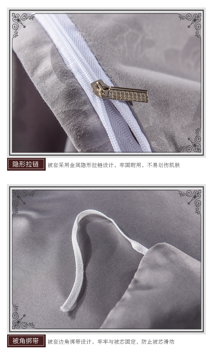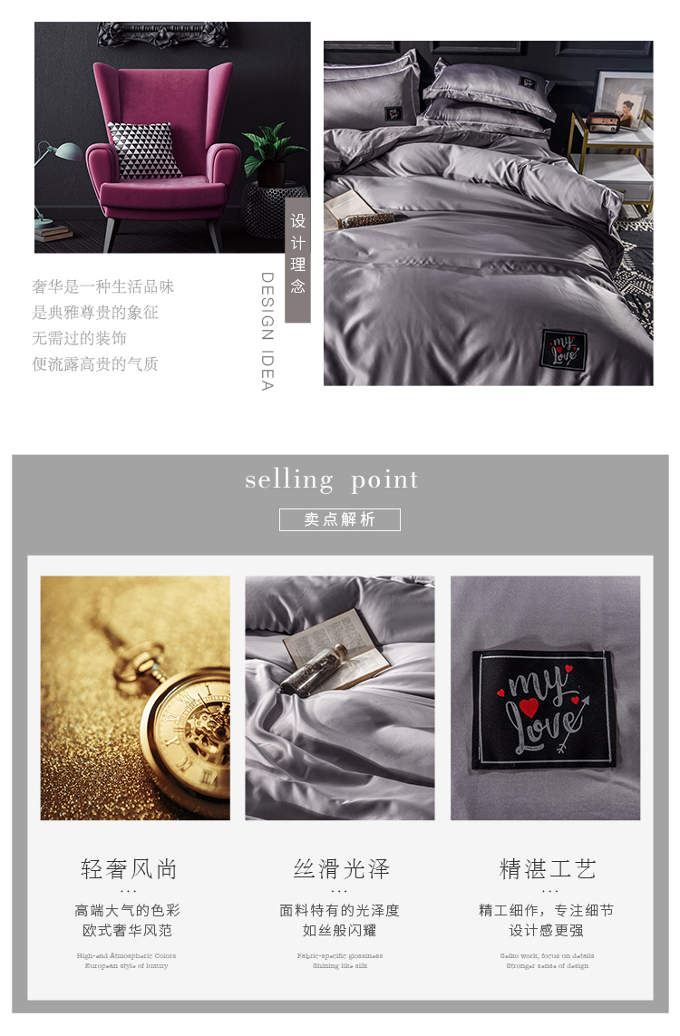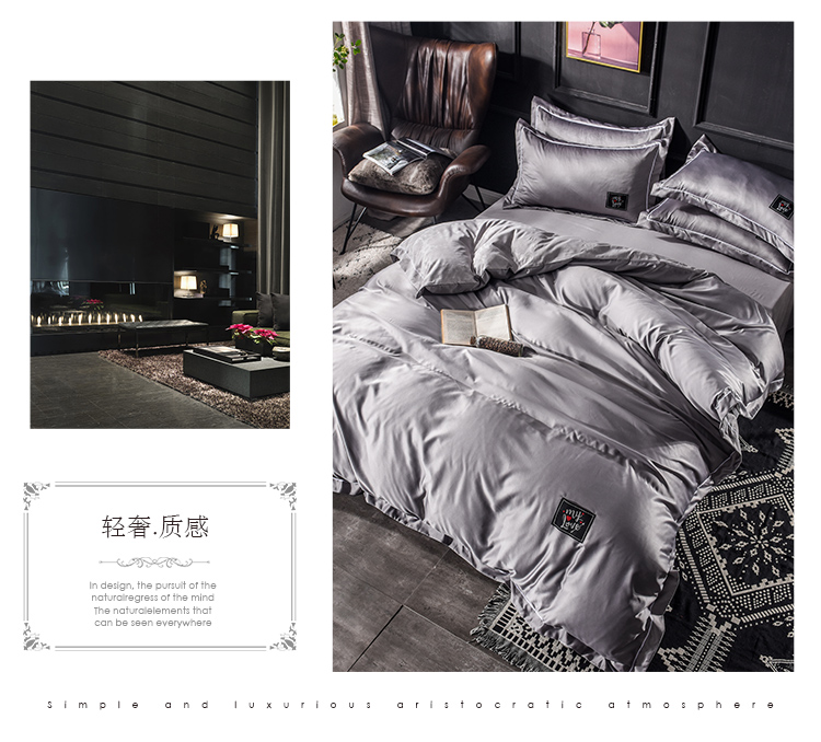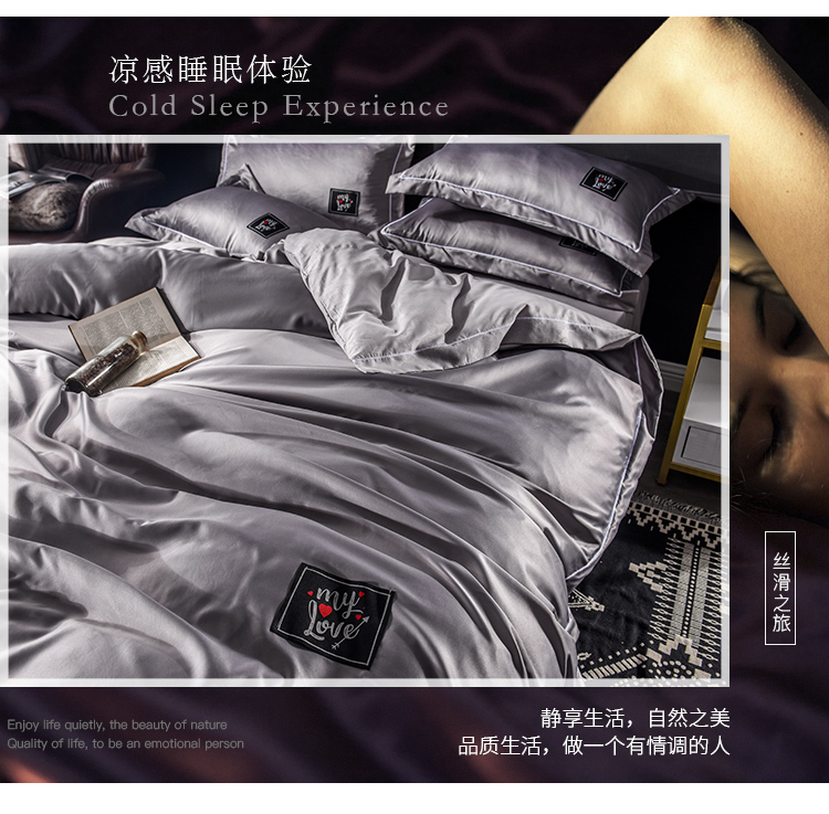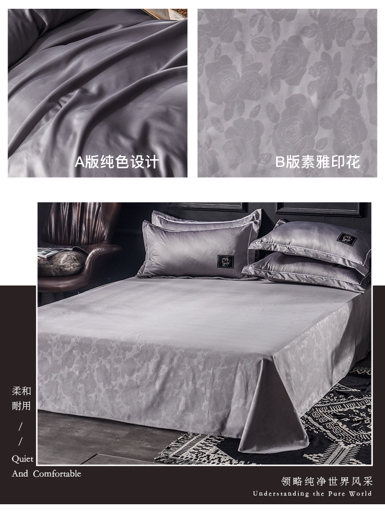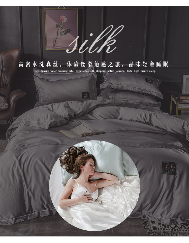 商品名称:欧冠 2019新款水洗真丝贴布绣四件套 床单款 烟灰