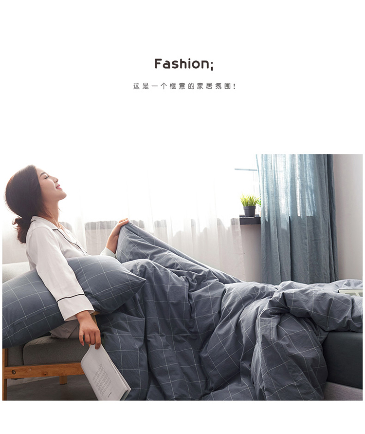 商品名称:柠萌家居2019全棉色织水洗棉无印良品四件套床单款格纹-冷灰