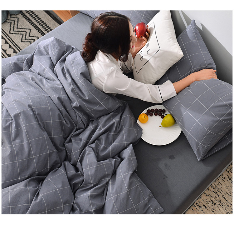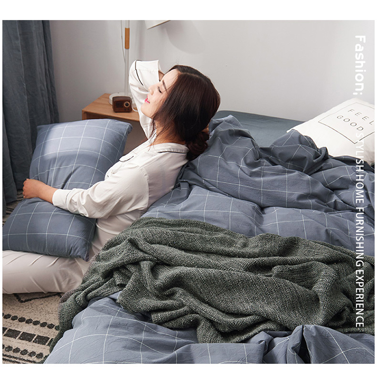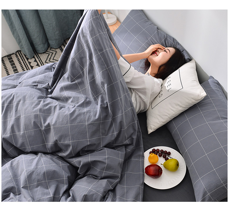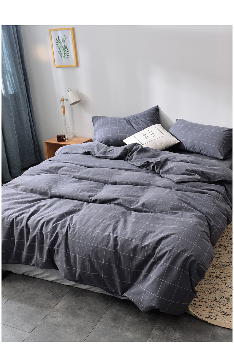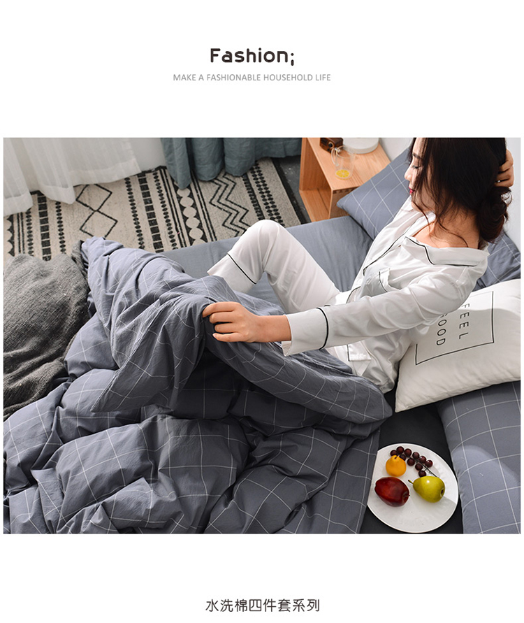 柠萌家居2019全棉色织水洗棉无印良品四件套床单款格纹-冷灰