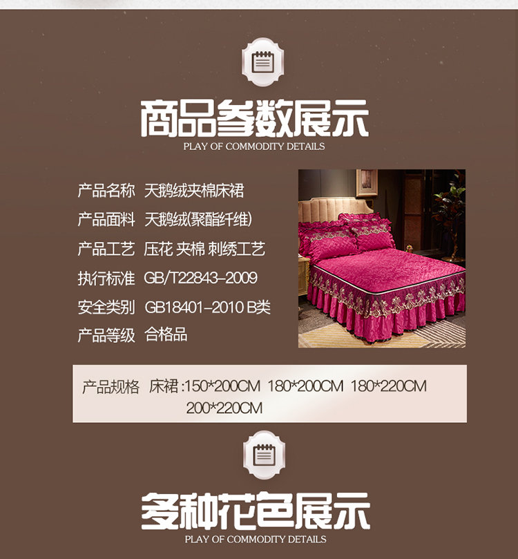 商品名称:网红馆 2025天鹅绒皇家风范拉链款单品床裙 玫红