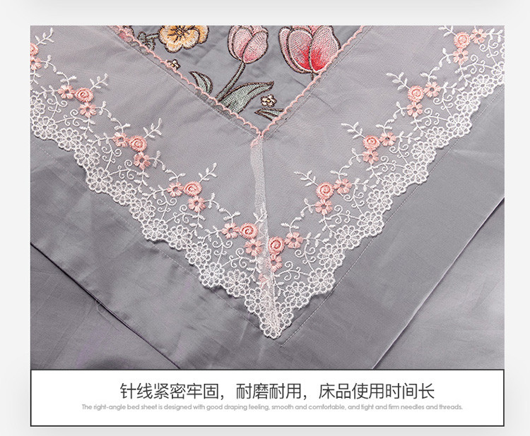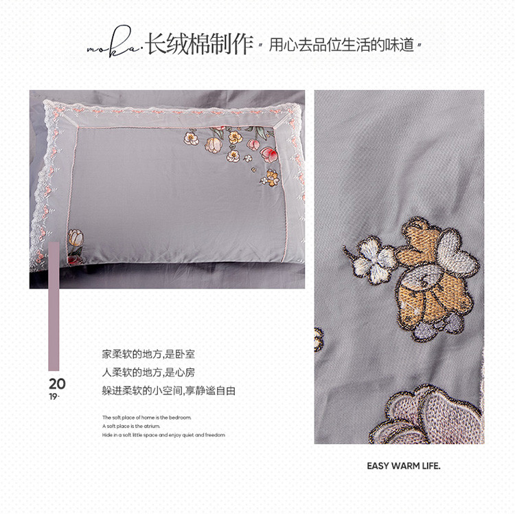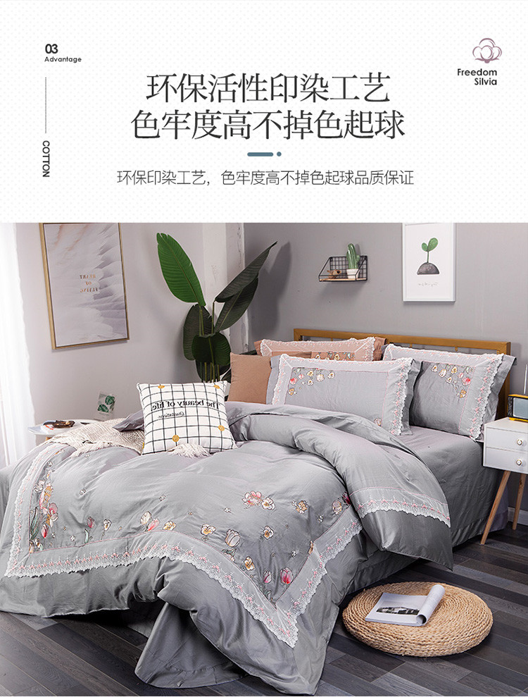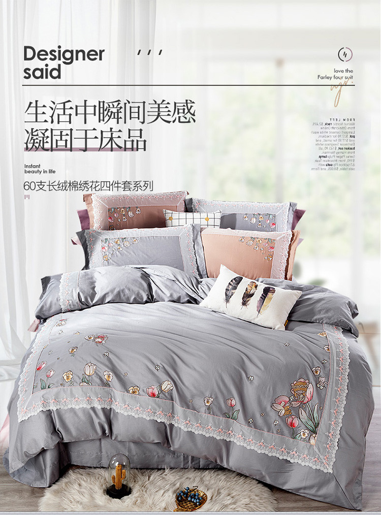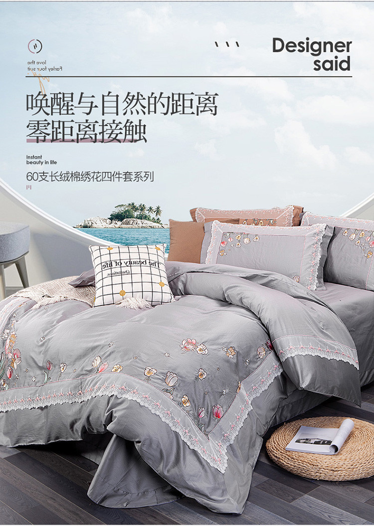 商品名称:雲归梦 2019新款60S长绒棉绣花四件套 花仙子灰色