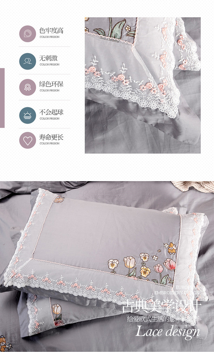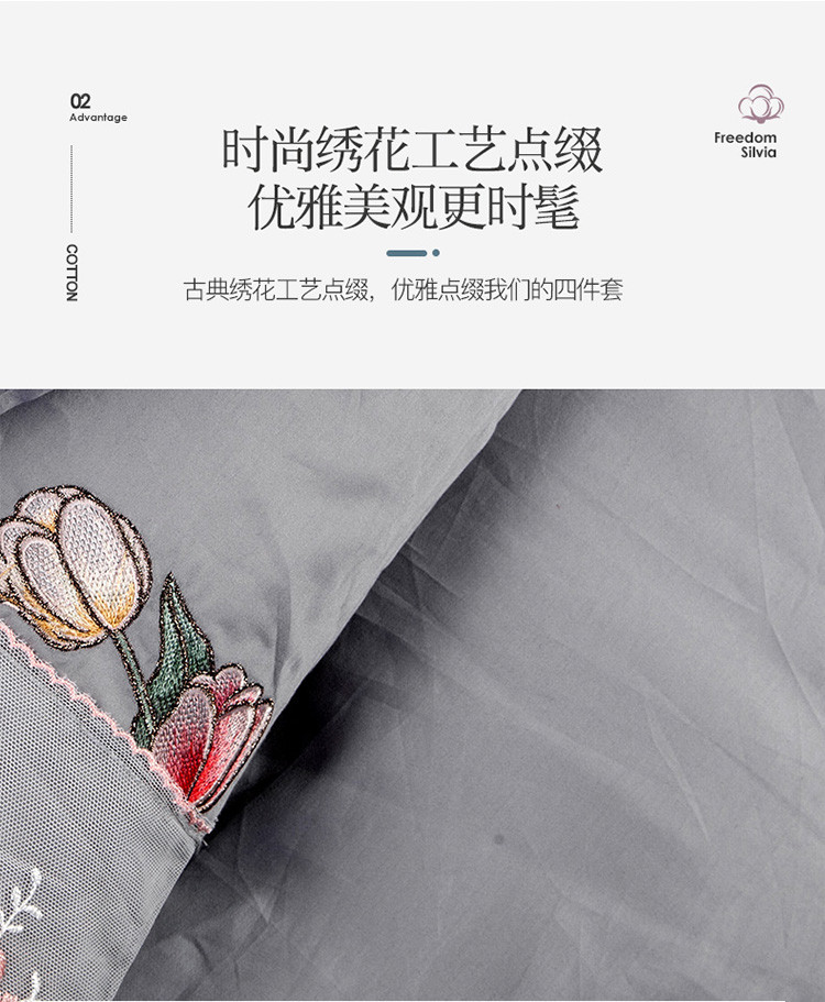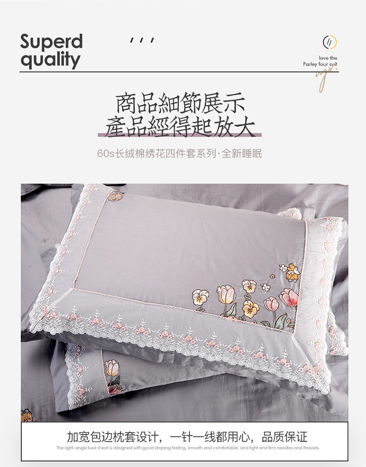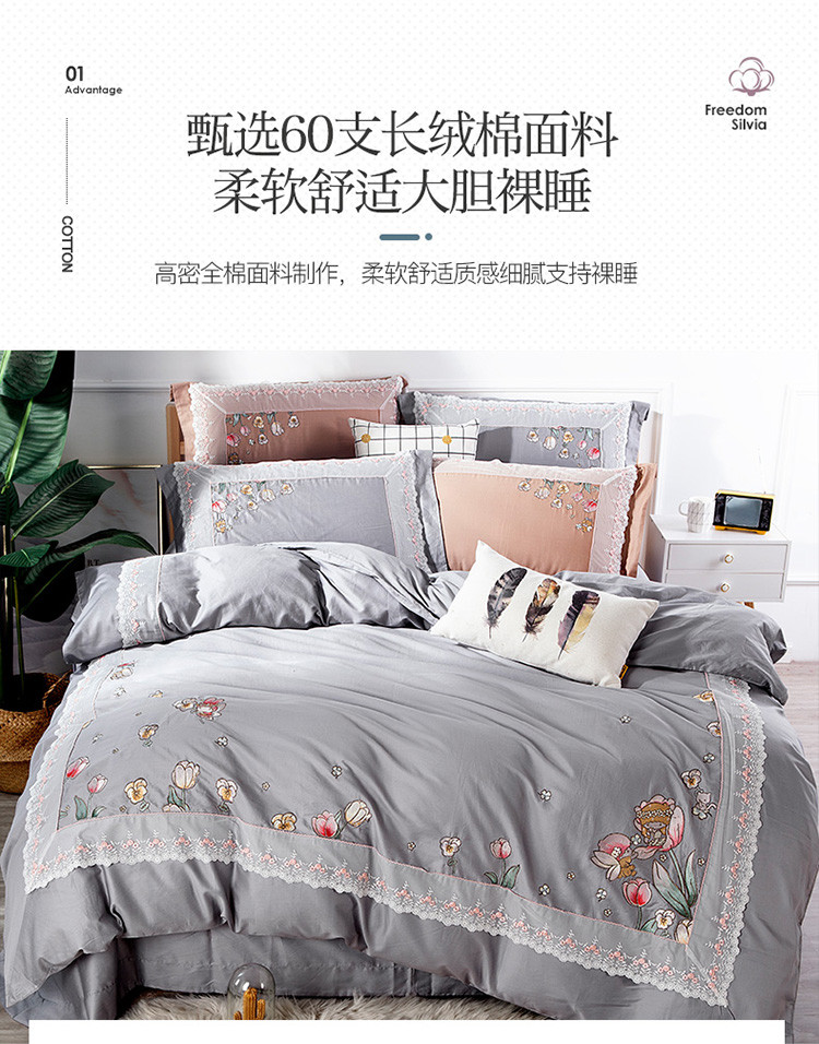 商品名称:雲归梦 2019新款60S长绒棉绣花四件套 花仙子灰色