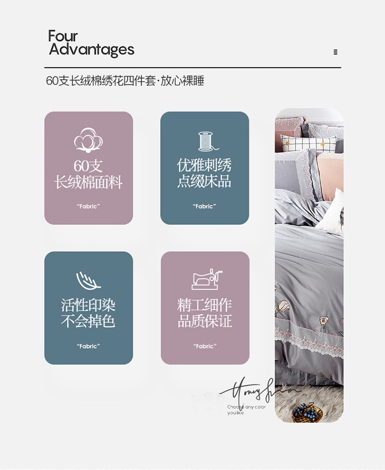 (总)雲归梦 2021新款全棉生态磨毛刺绣四件套,慕思-橙色,慕思-粉紫,慕思-灰,慕思-米黄,慕思-青绿,慕思-天蓝
