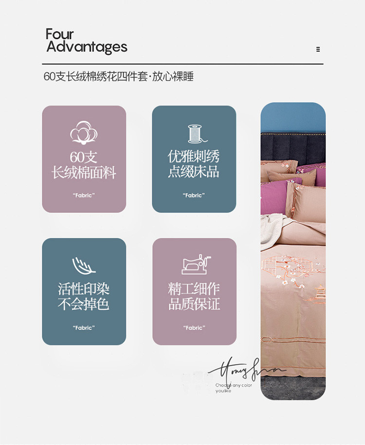 (总)雲归梦 2021新款全棉生态磨毛刺绣四件套,慕思-橙色,慕思-粉紫,慕思-灰,慕思-米黄,慕思-青绿,慕思-天蓝