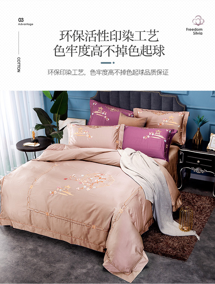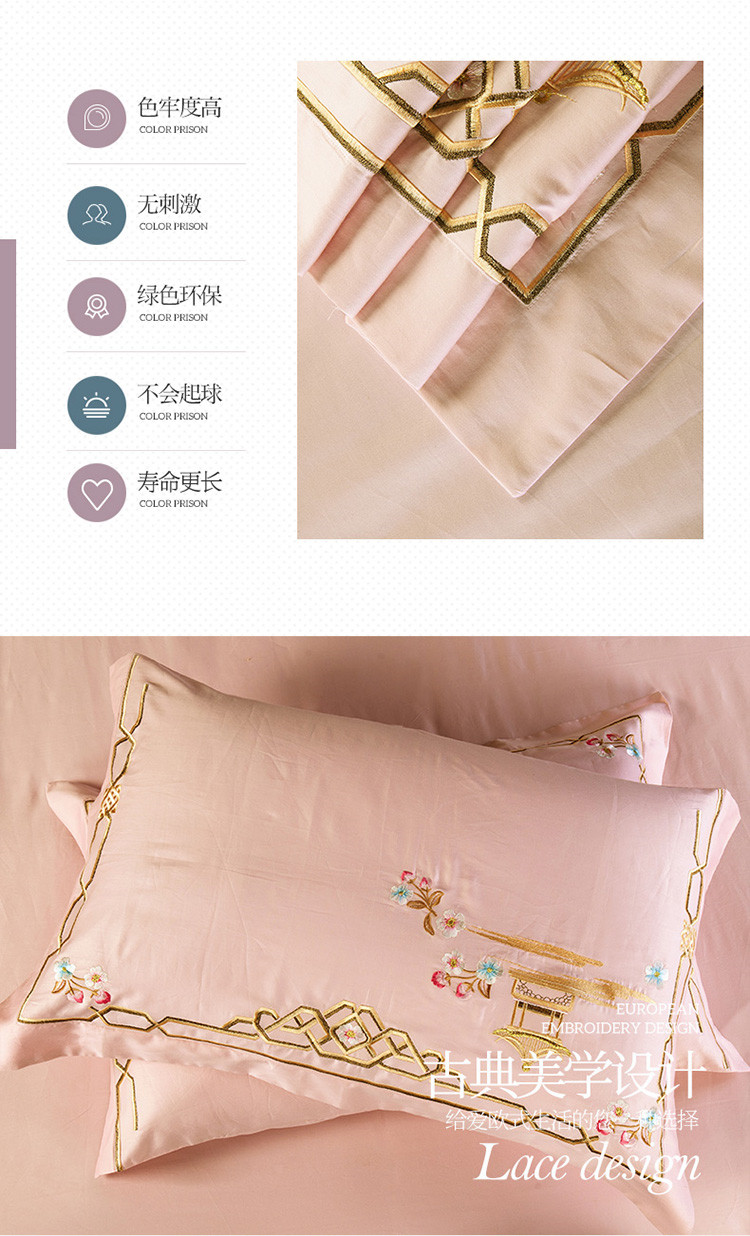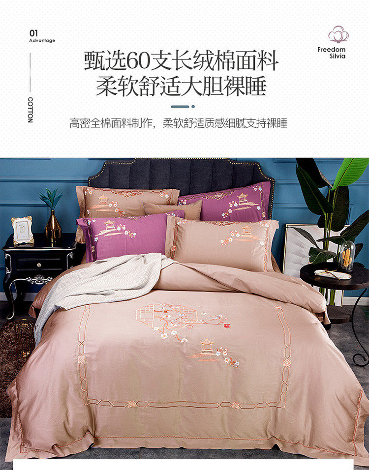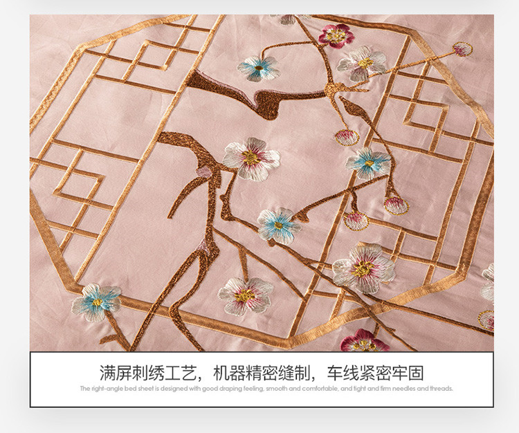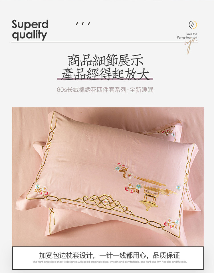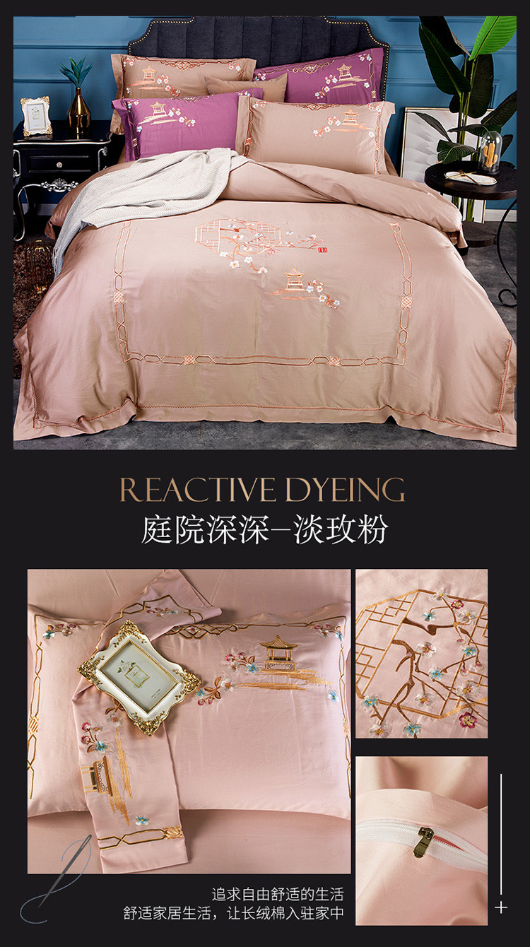 商品名称:雲归梦 2019新款60S长绒棉绣花四件套 庭院深深-淡玫粉