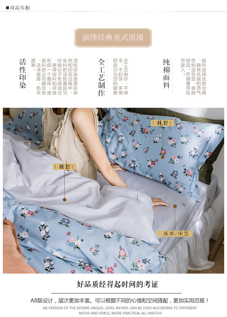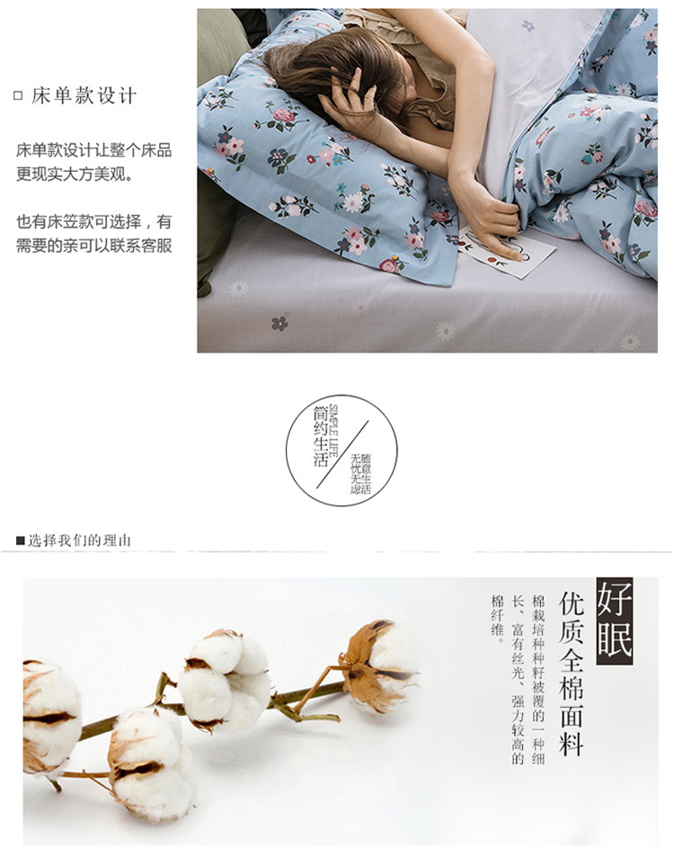 窝米 2020春夏新品全棉13372四件套小波西风系列小花花,小花花