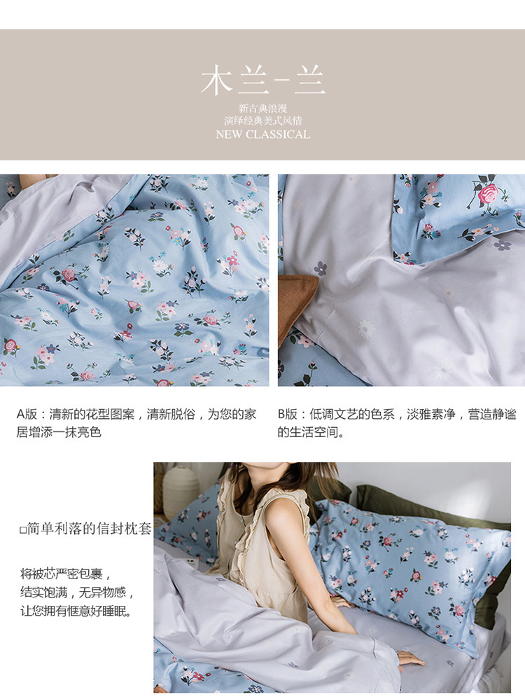窝米2019全棉13372田园花卉系列四件套床单款木兰-兰