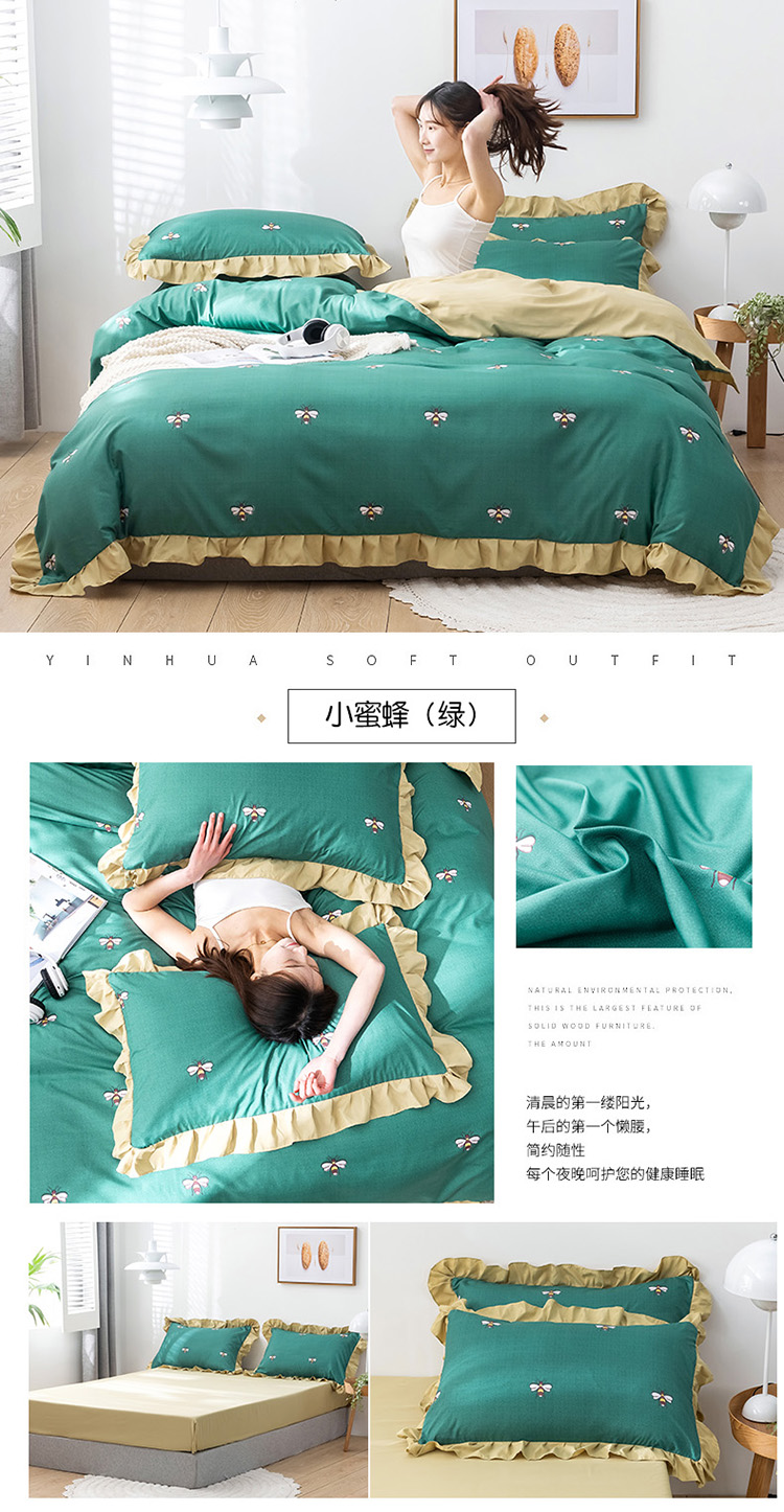 (总)意尚风情 2023新款天丝提花蕾丝刺绣四件套,薄荷绿,宾利兰,豆沙,高级灰,格调灰,姜黄,墨绿,少女粉,香芋紫,雅绿