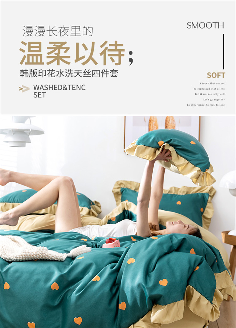 意尚风情 2020年韩版印花水洗天丝四件套 好心情(绿)