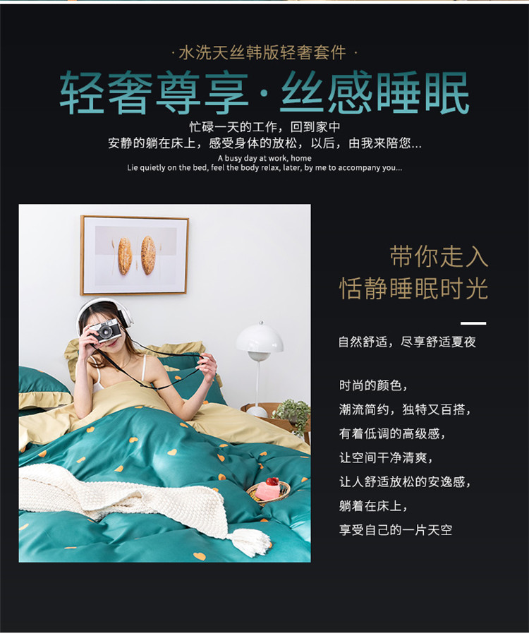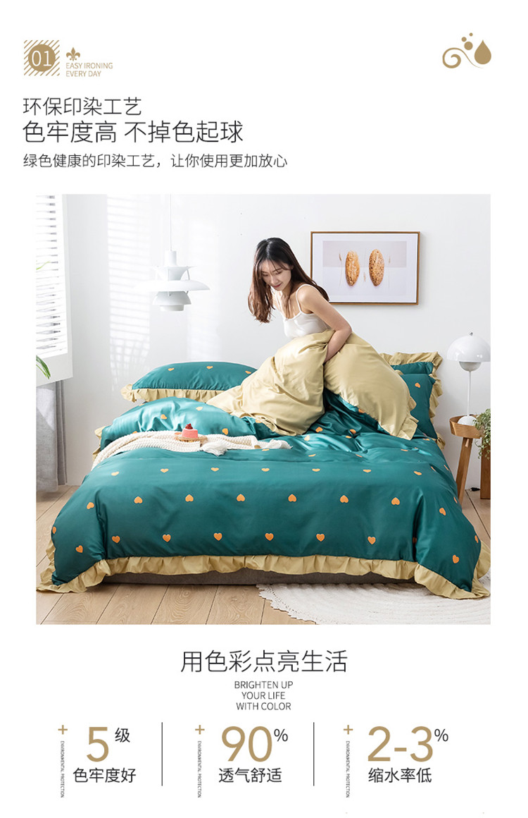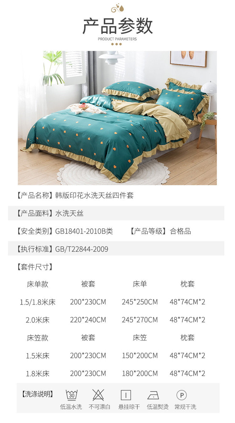 商品名称:意尚风情 2020年韩版印花水洗天丝四件套 好心情(绿)
