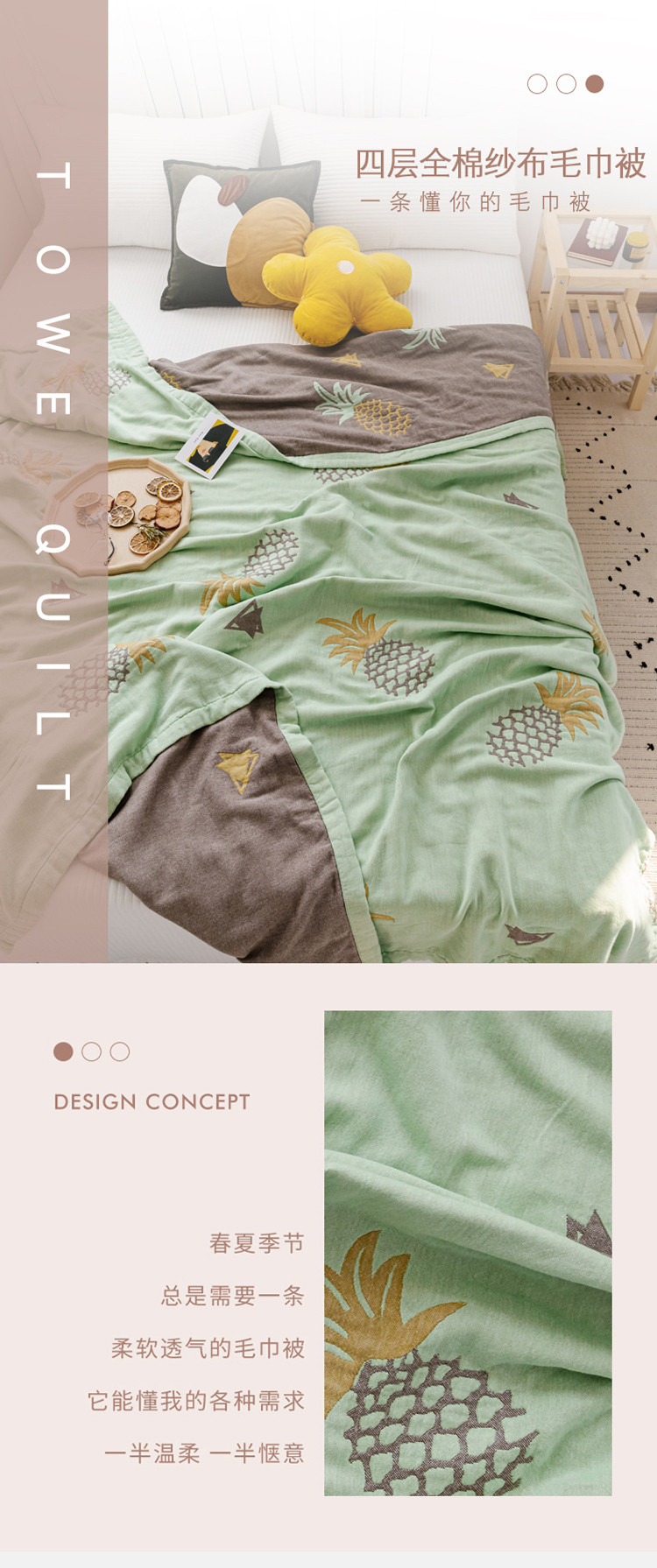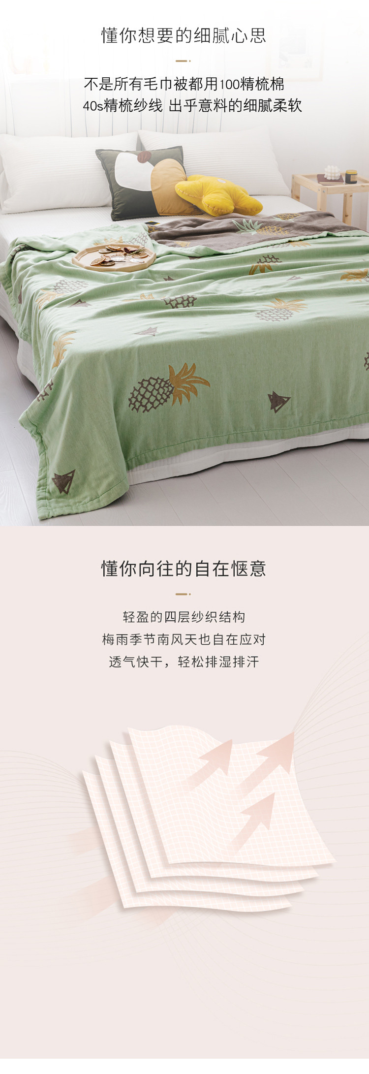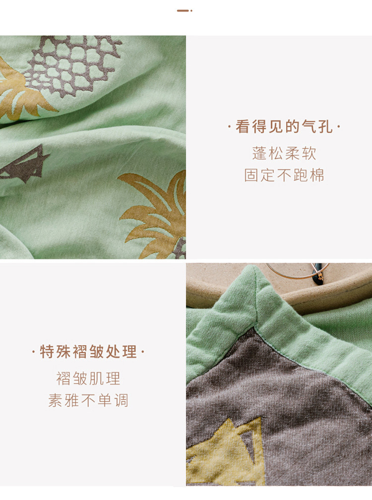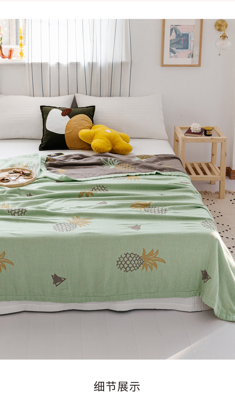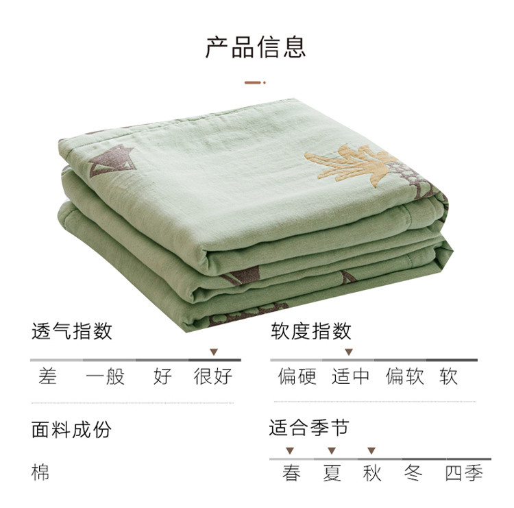 商品名称:朴尔 2020年新款水果系列四层纱布毛巾被 菠萝与三角-绿咖