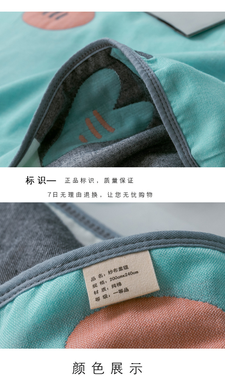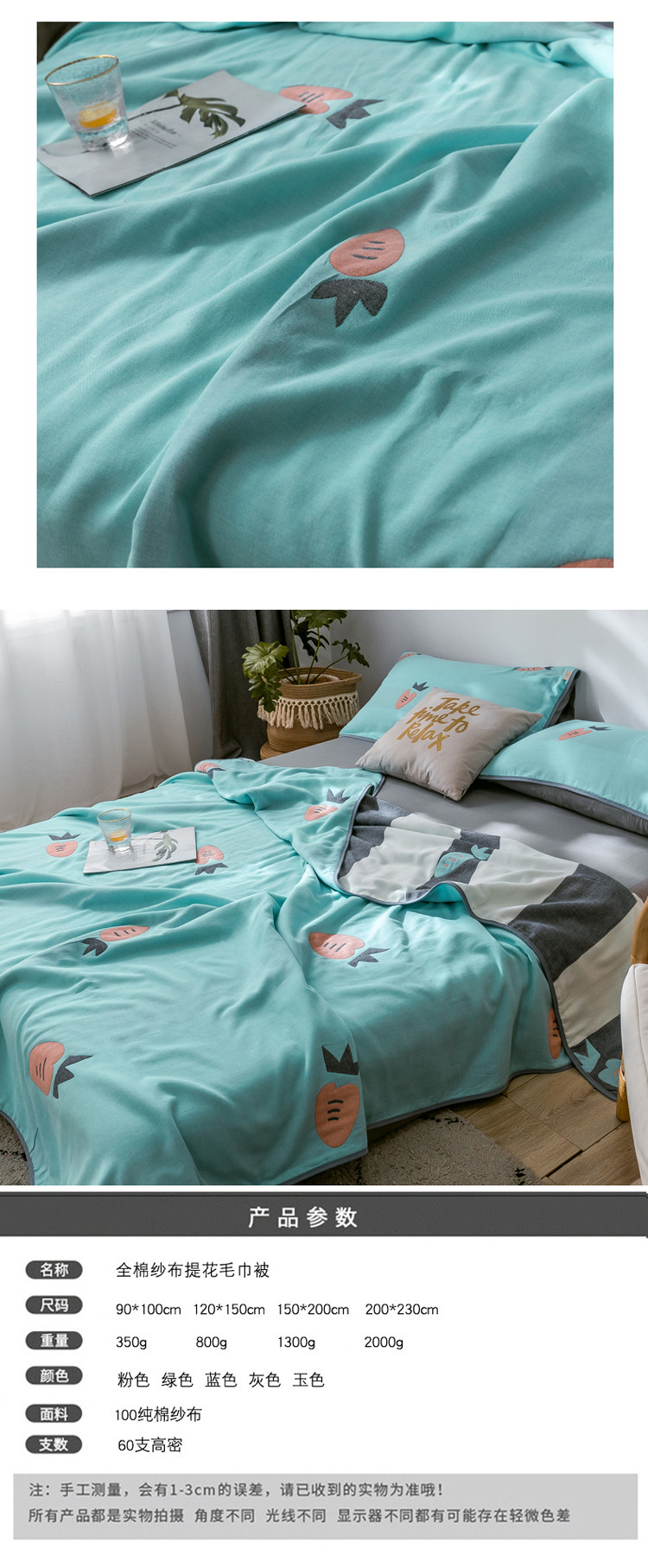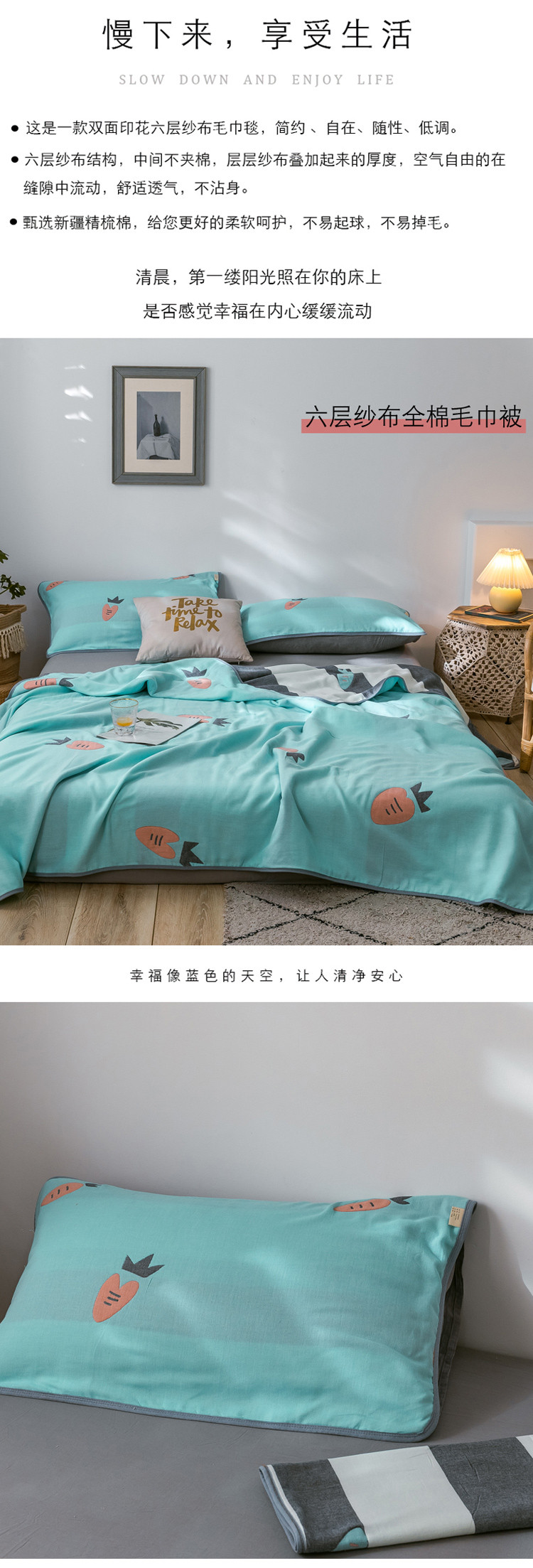 商品名称:朴尔2020新款时尚六层全棉纱布盖毯夏季毛巾被 农场胡萝卜绿