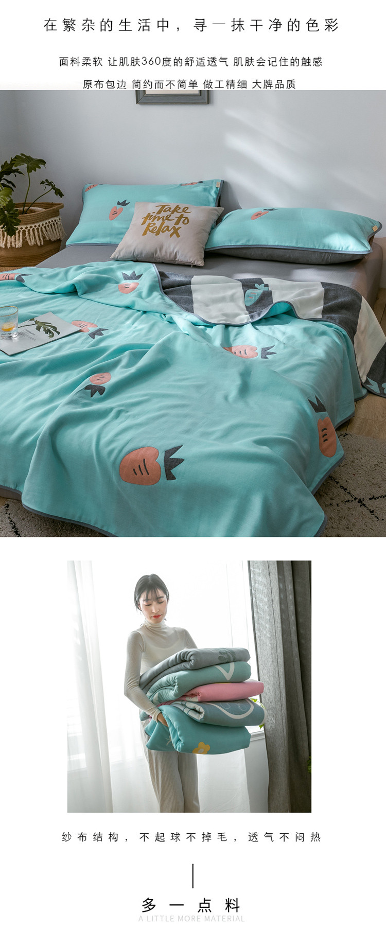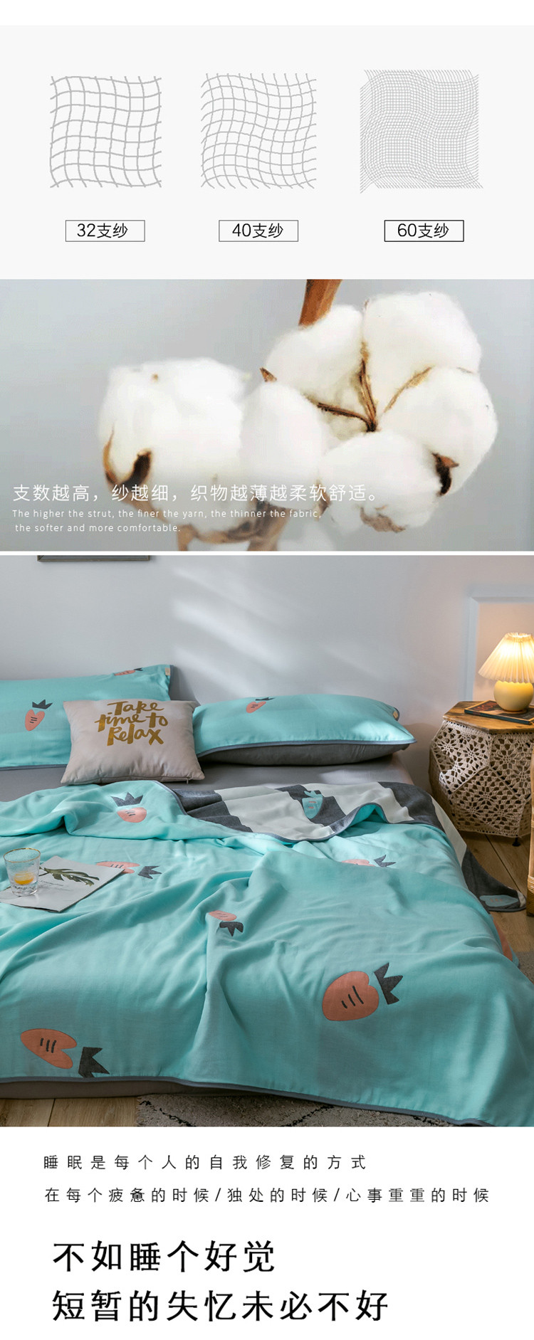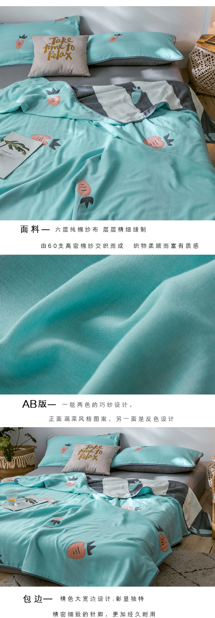 朴尔2020新款时尚六层全棉纱布盖毯夏季毛巾被 农场胡萝卜绿