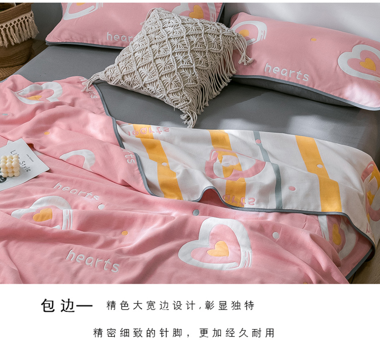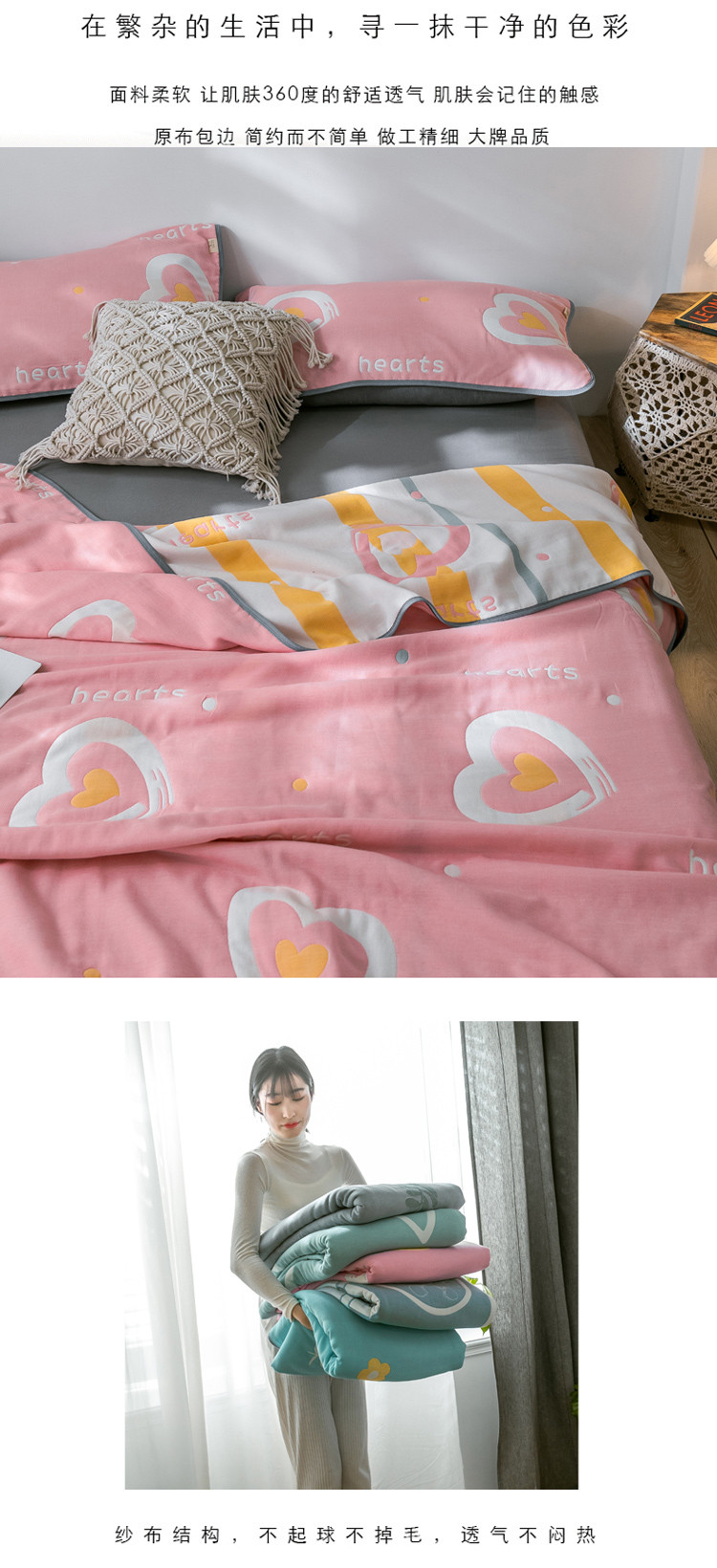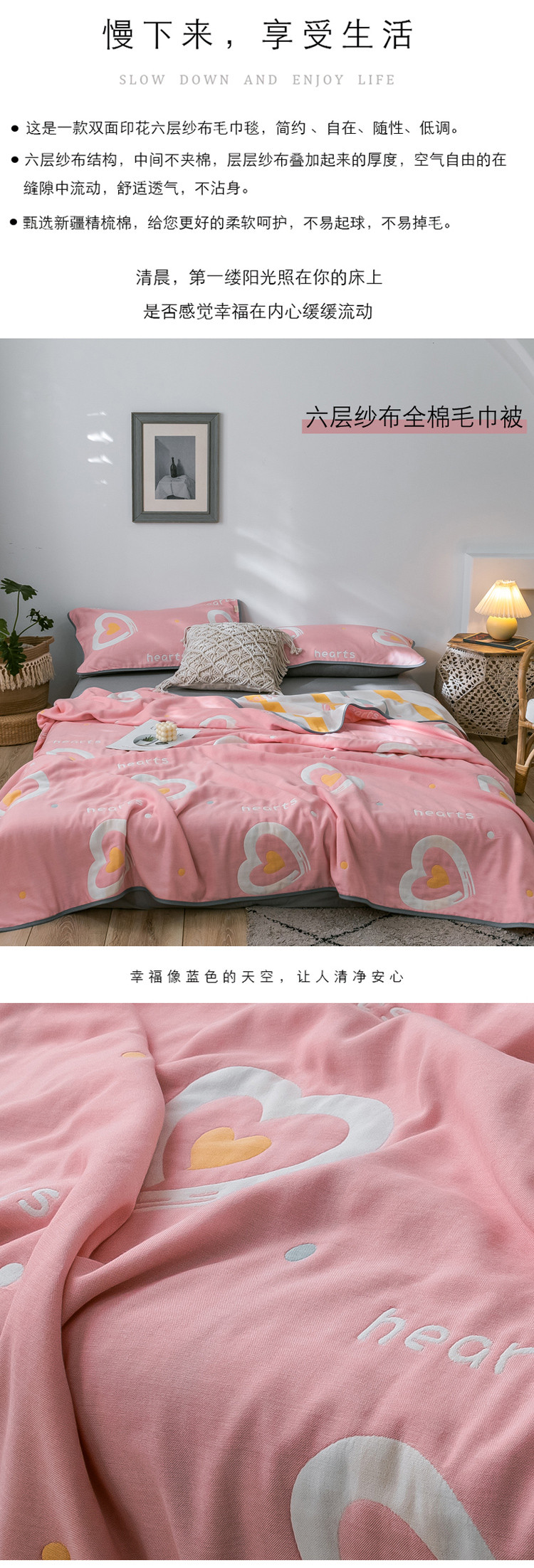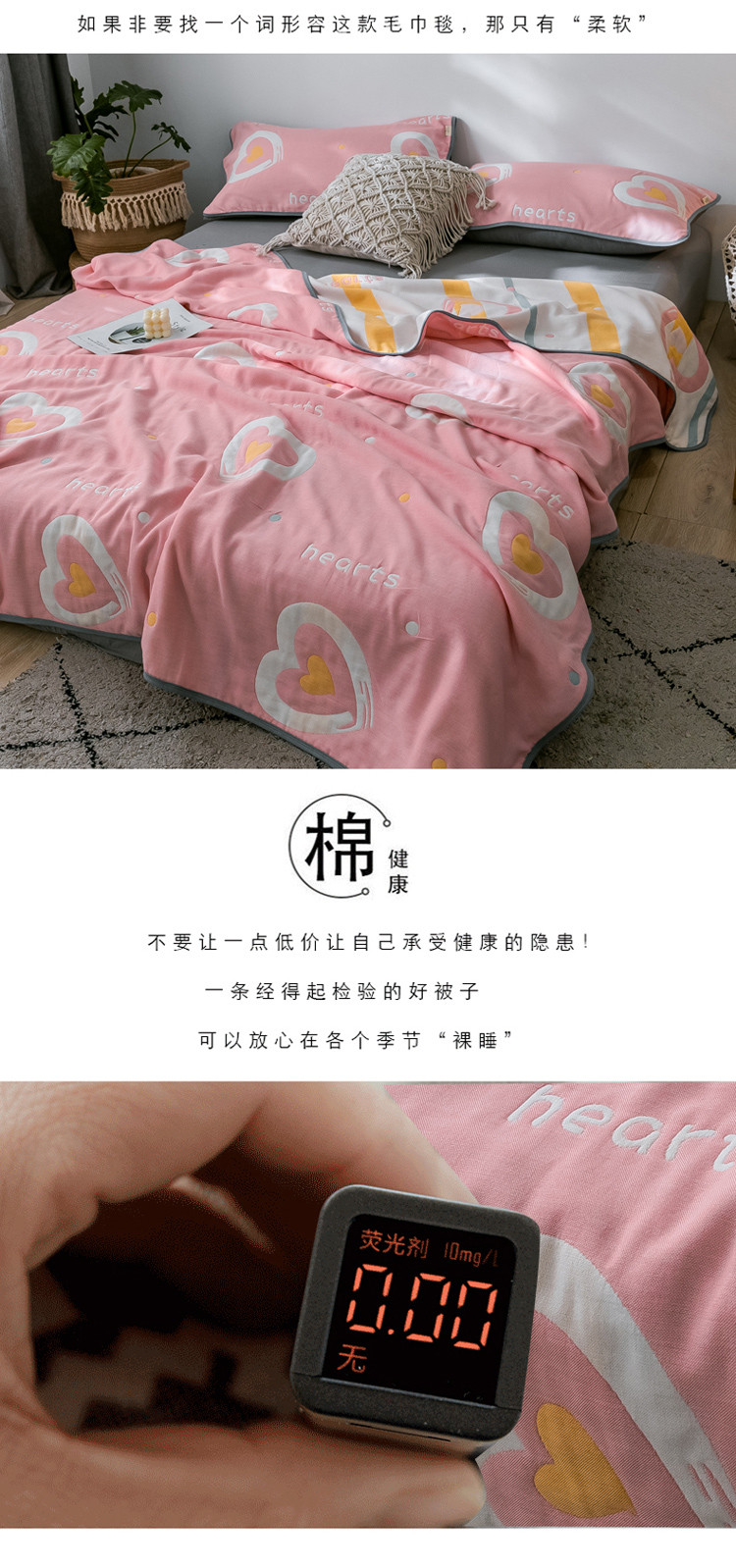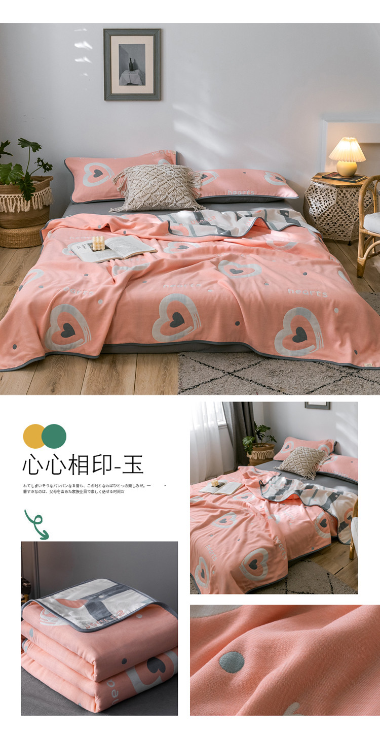 朴尔2020新款时尚六层全棉纱布盖毯夏季毛巾被 心心相印-玉