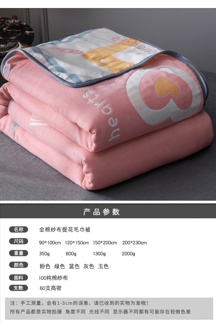 商品名称:朴尔2020新款时尚六层全棉纱布盖毯夏季毛巾被 心心相印-玉