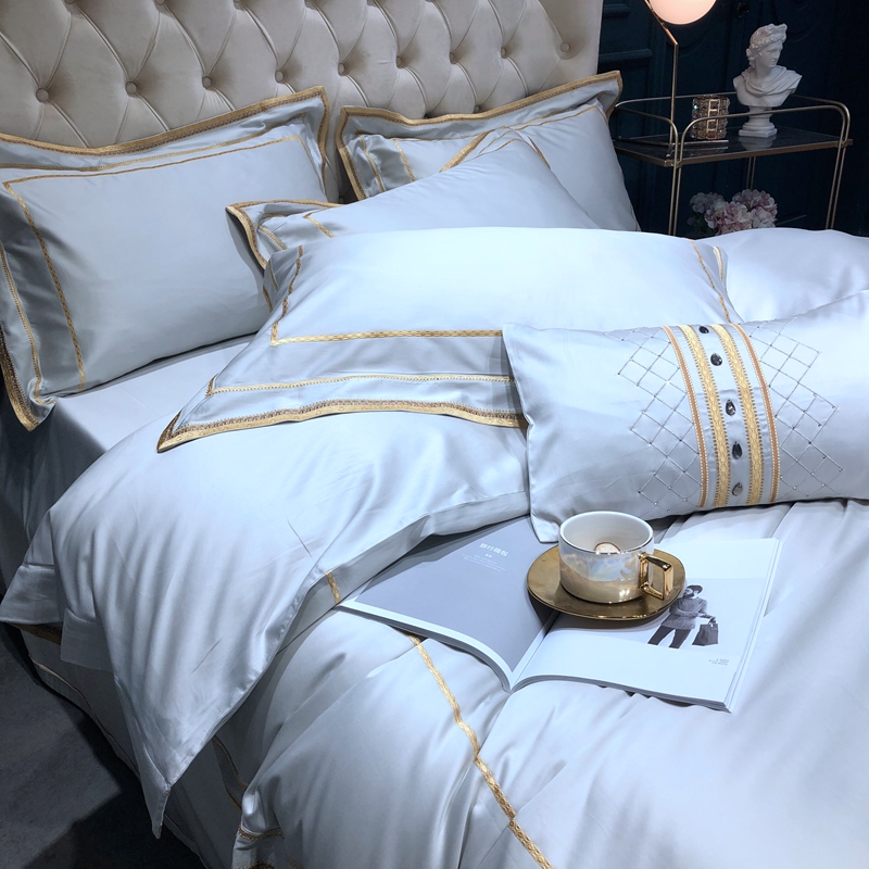 馨蕊家居 2021新款春夏100S莫兰迪长绒棉四件套珍珠米灰