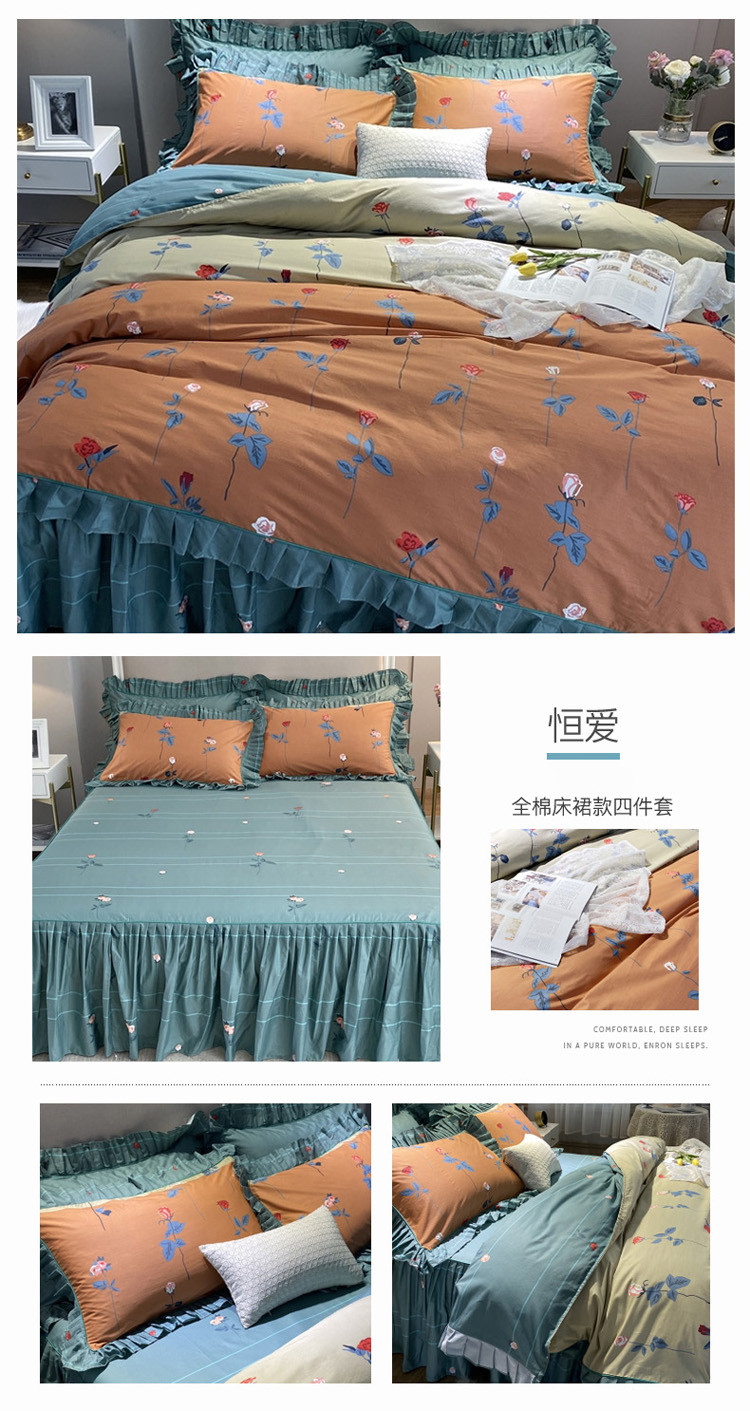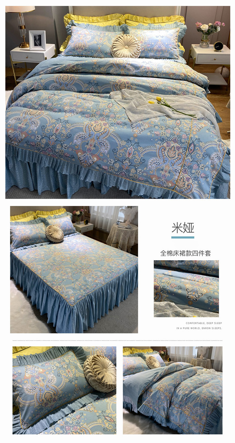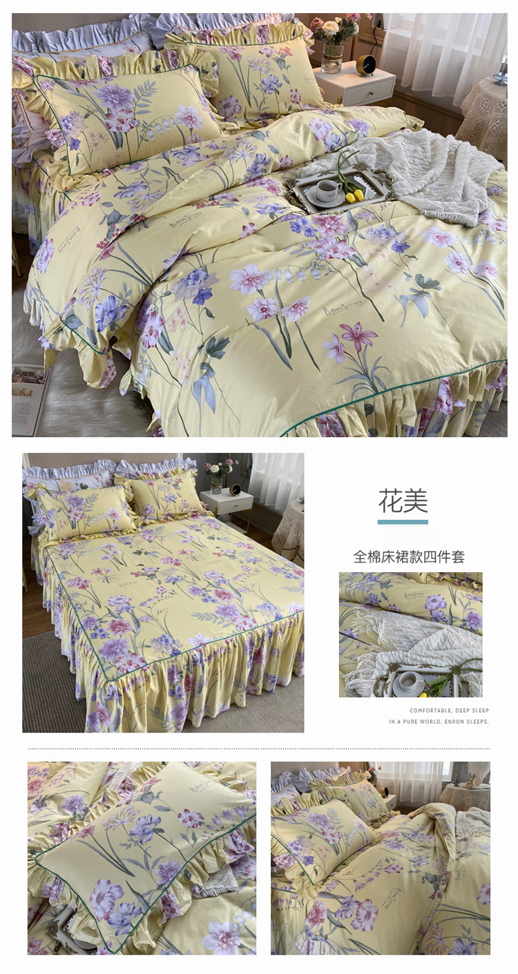 (总)菊上家纺 2023秋冬新品法式花边全棉床盖四件套,安妮紫,花千骨,小欢喜,布拉格,罗蔓莉,玛雅灰,小幸运,卡町绿,恋花影,薇薇安