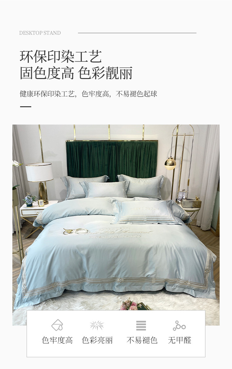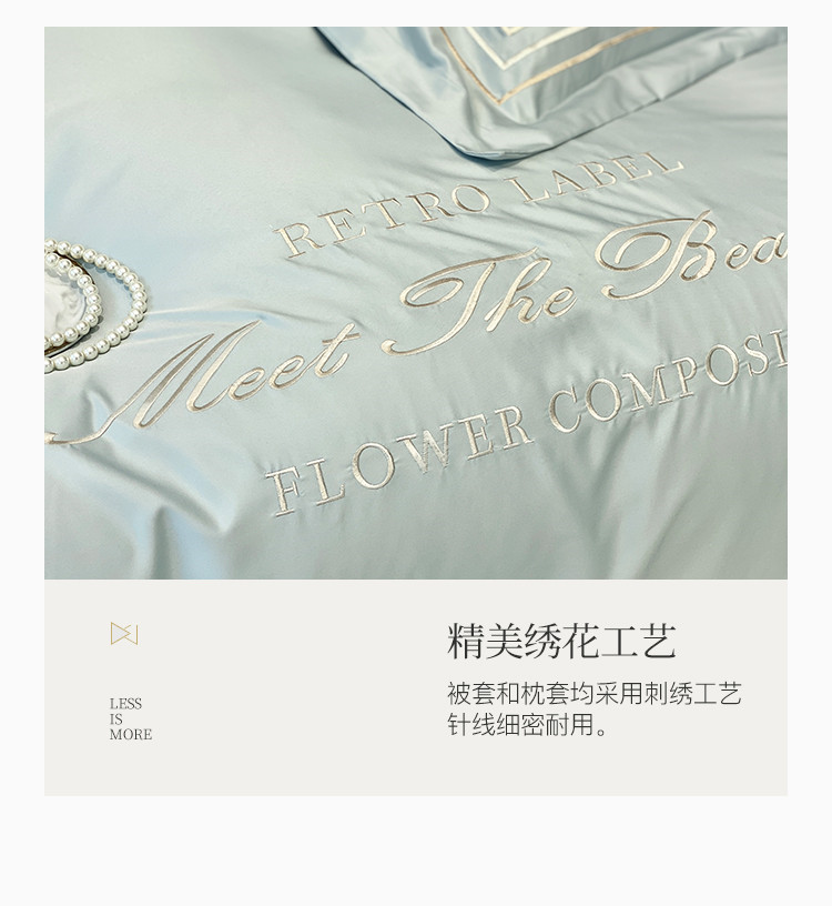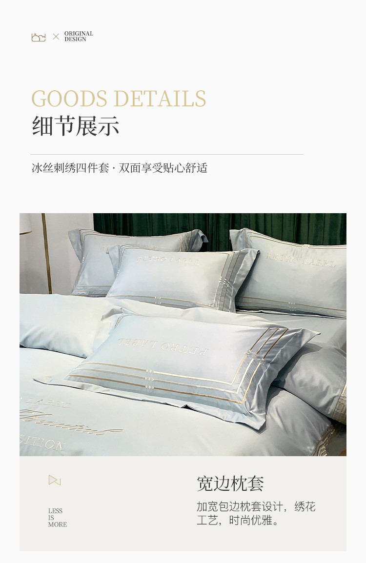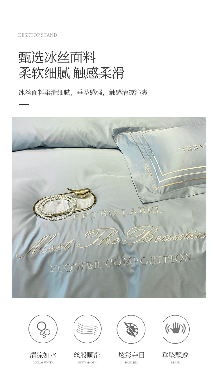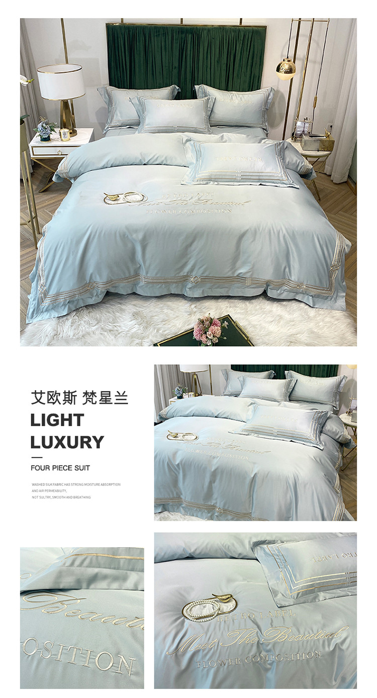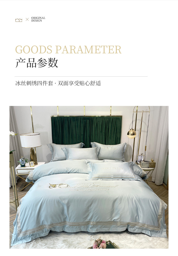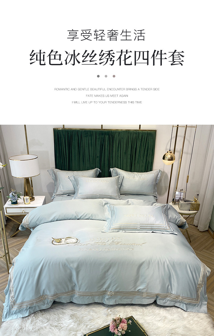 商品名称:理想家 2020新款纯色冰丝绣花四件套艾欧斯系列 梵星兰