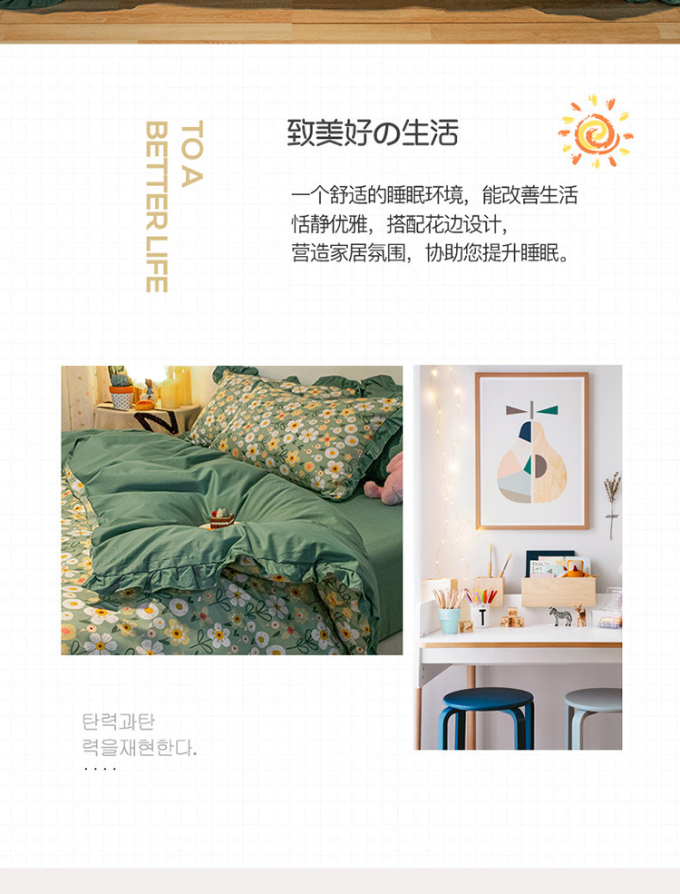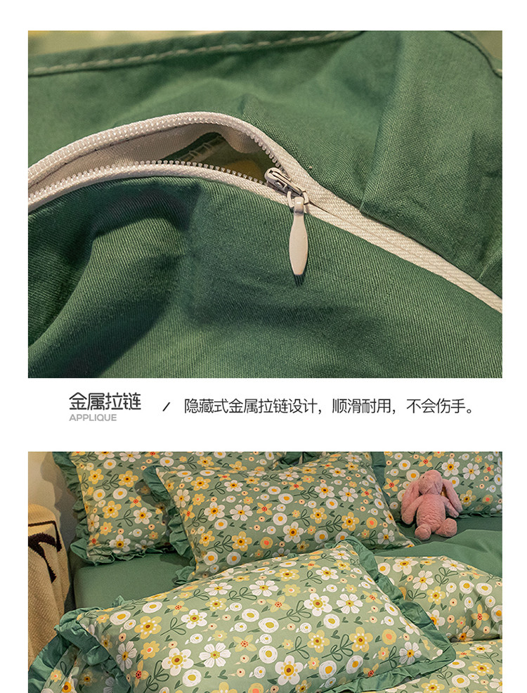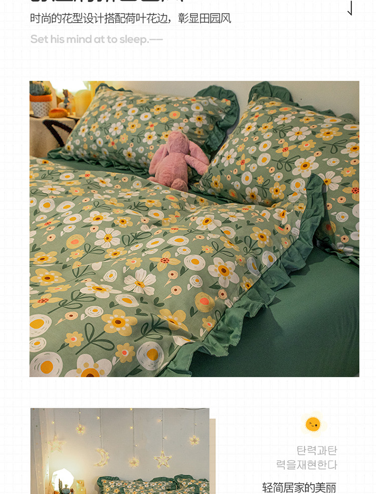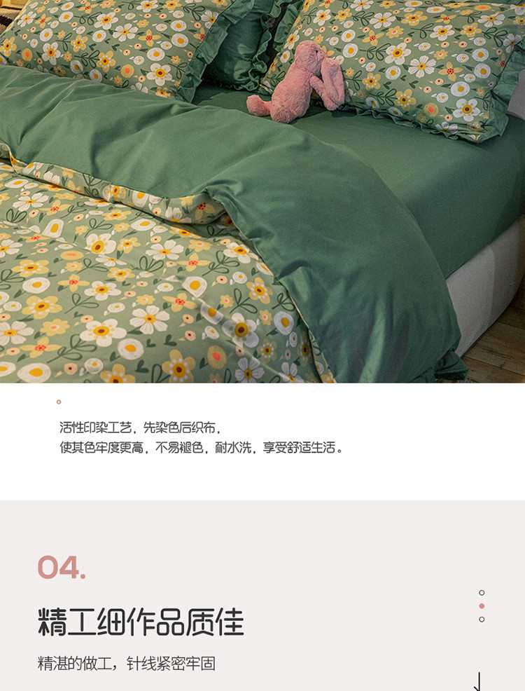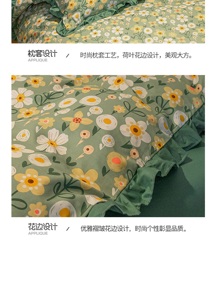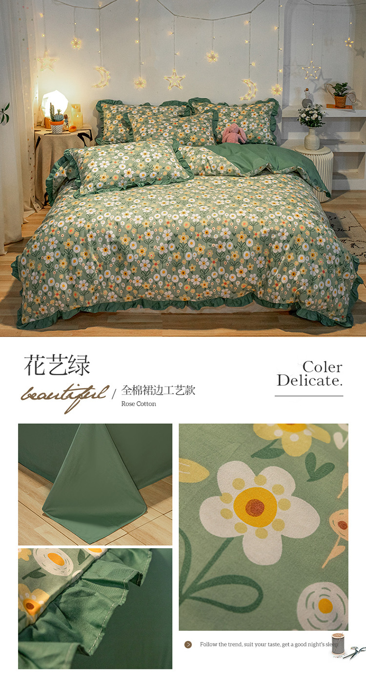 商品名称:琪格格 2022新款工艺款裙边全棉印花四件套 花艺绿