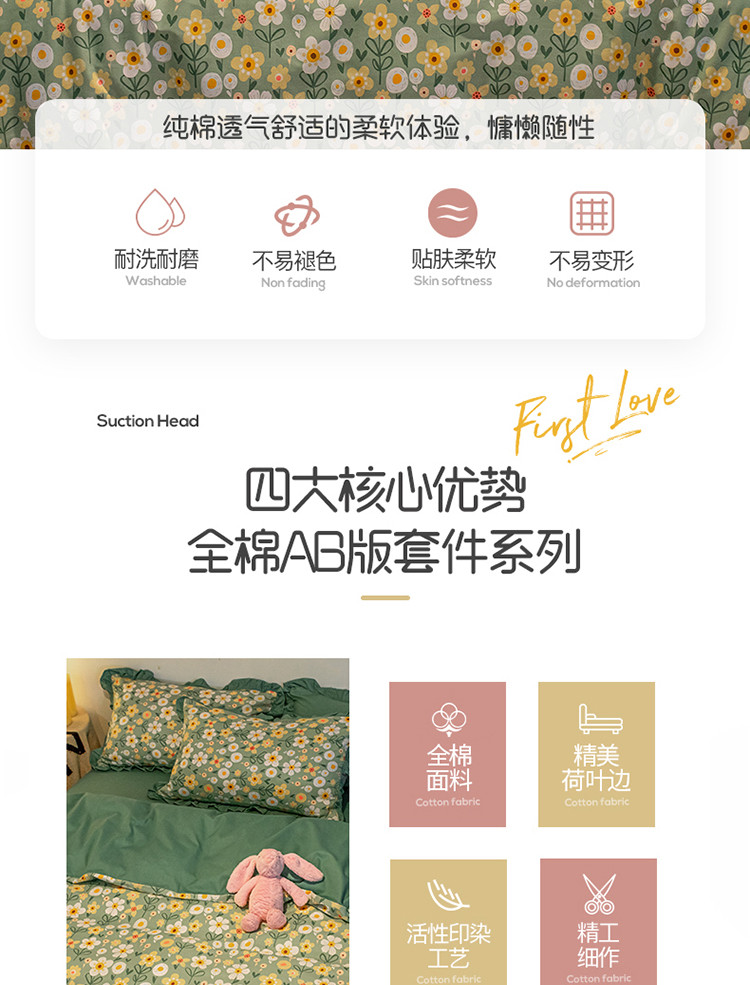 (总)琪格格纺织 2025新款全棉纯棉13372小清新四件套,爱心兔,白兔与熊,彩霞,美郁-紫,萌心兔,皮皮兔,苏珊花园,微雨,小粉兔,熊猫
