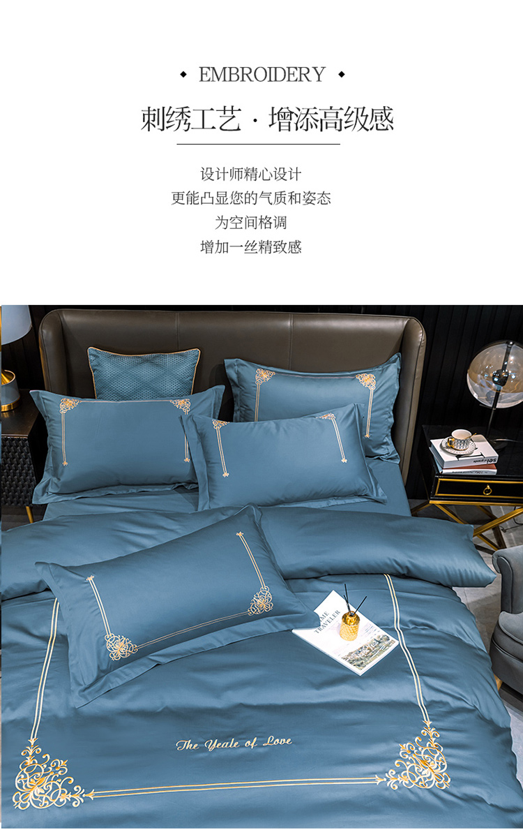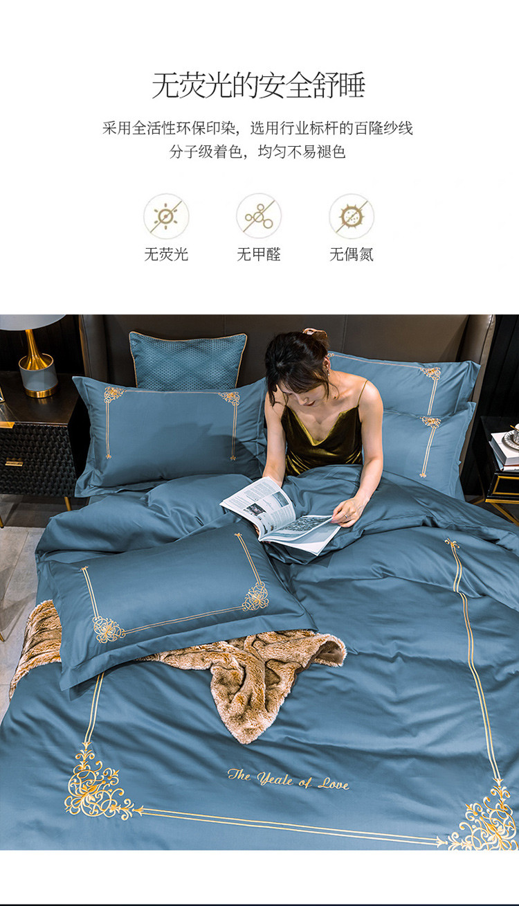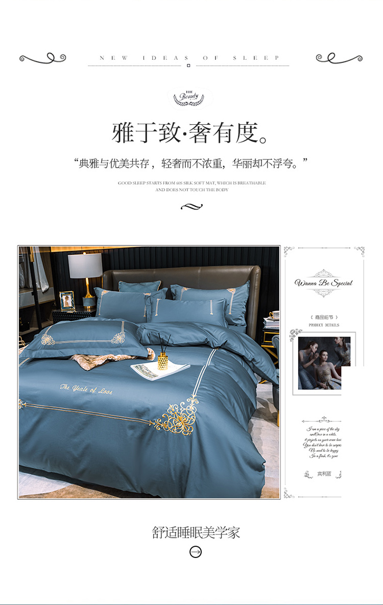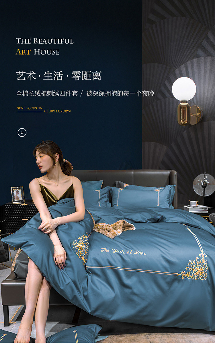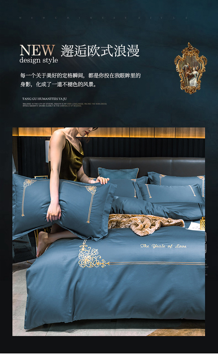 慕色家纺2020新款欧式倾城全棉长绒棉刺绣四件套倾城-宾利蓝
