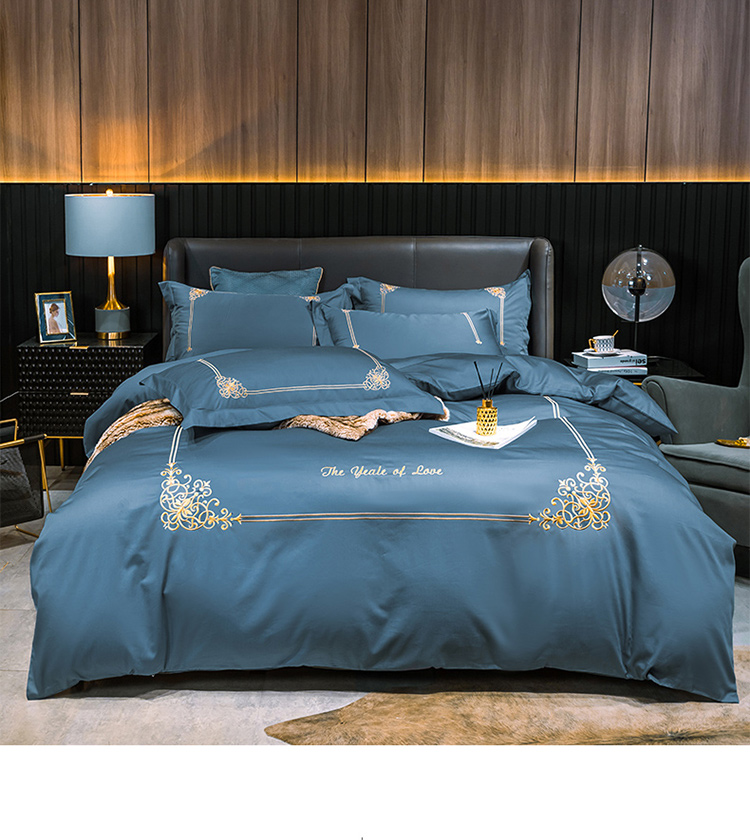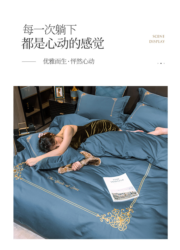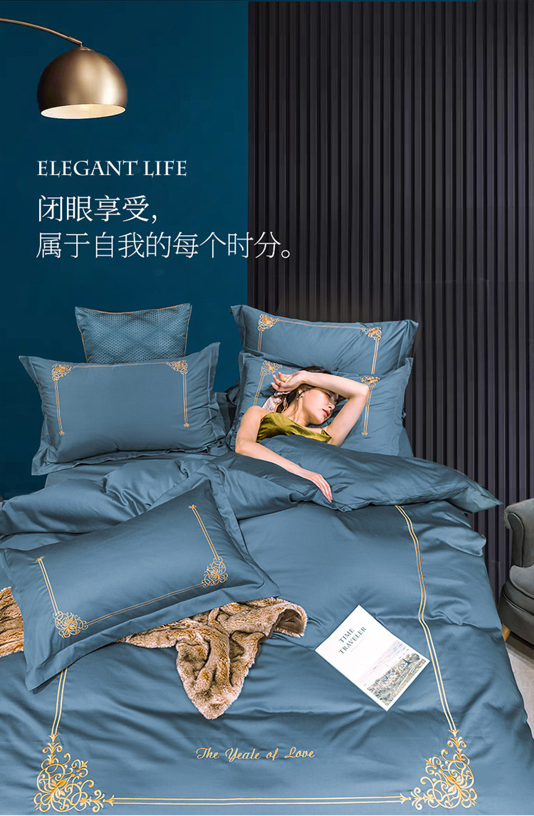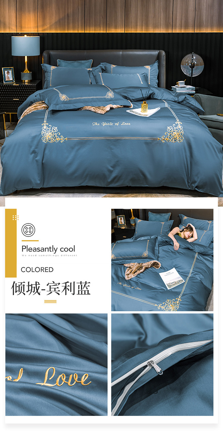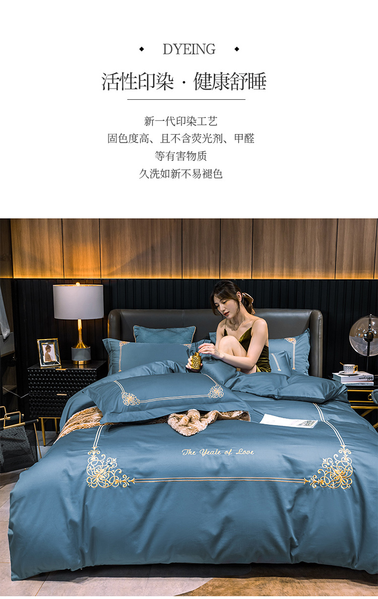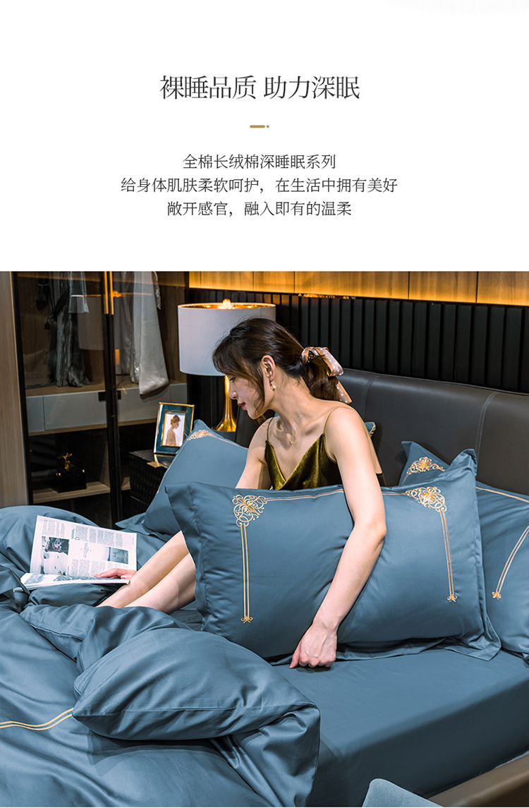慕色家纺2020新款欧式倾城全棉长绒棉刺绣四件套倾城-宾利蓝
