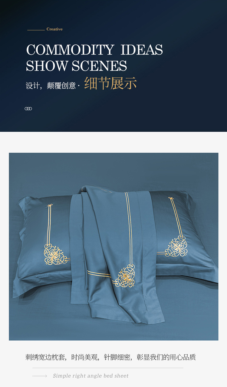 商品名称:慕色家纺2020新款欧式倾城全棉长绒棉刺绣四件套倾城-宾利蓝