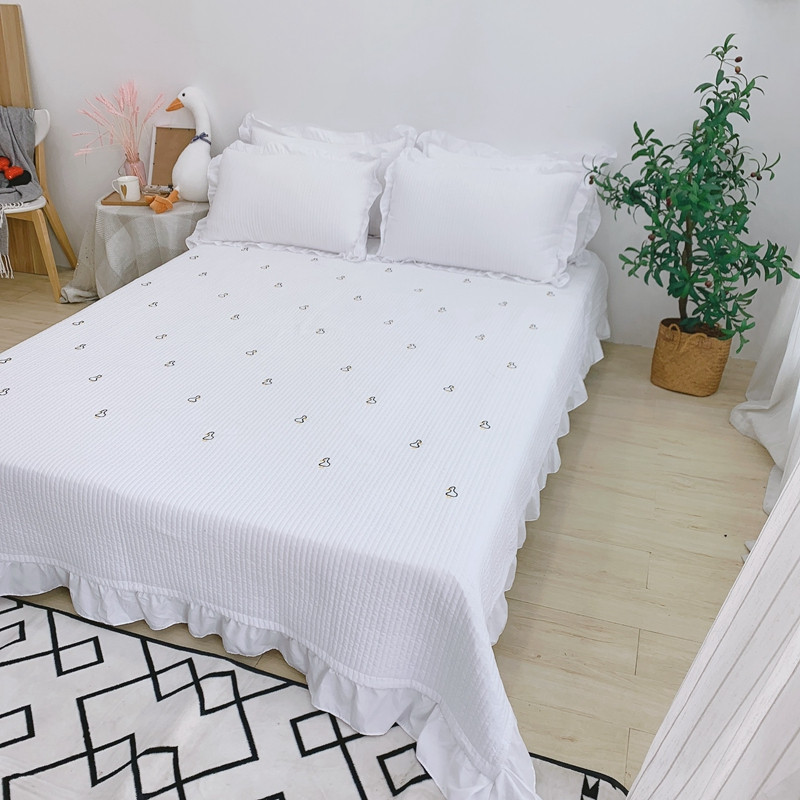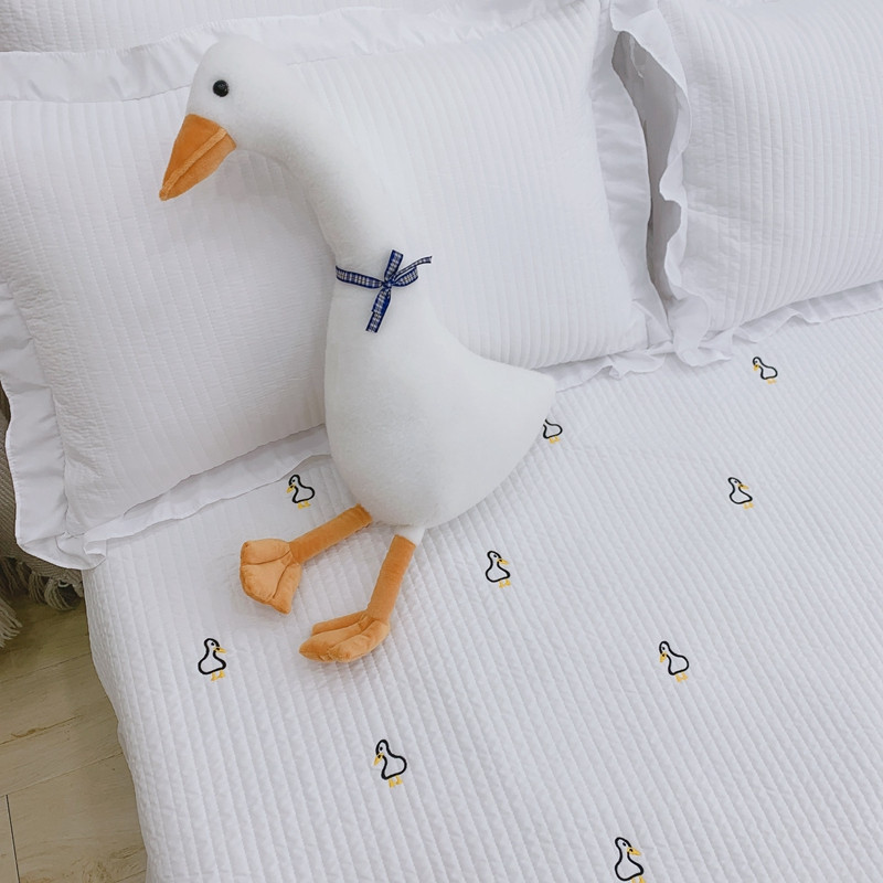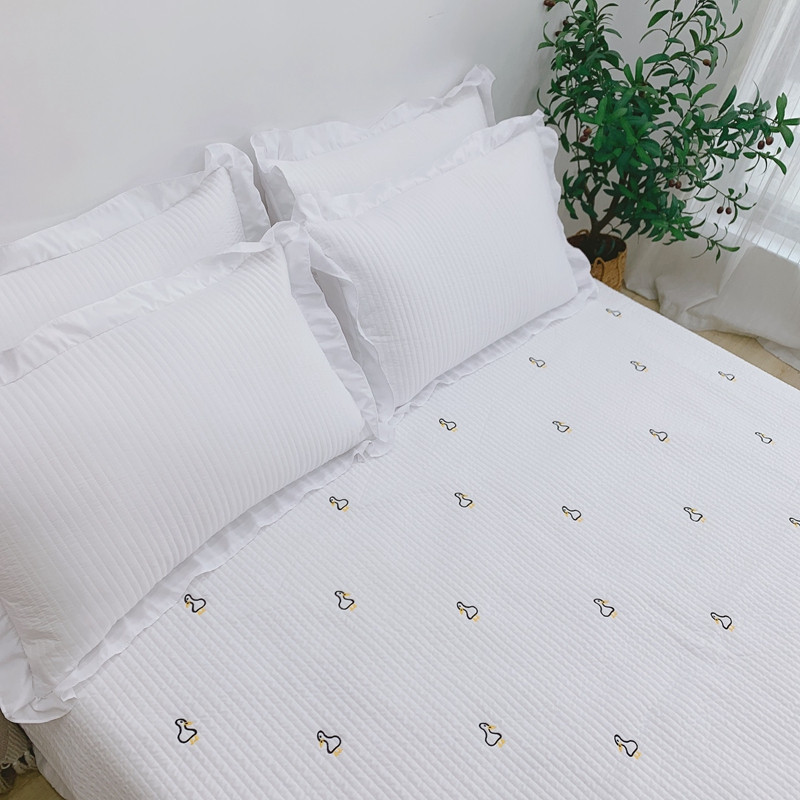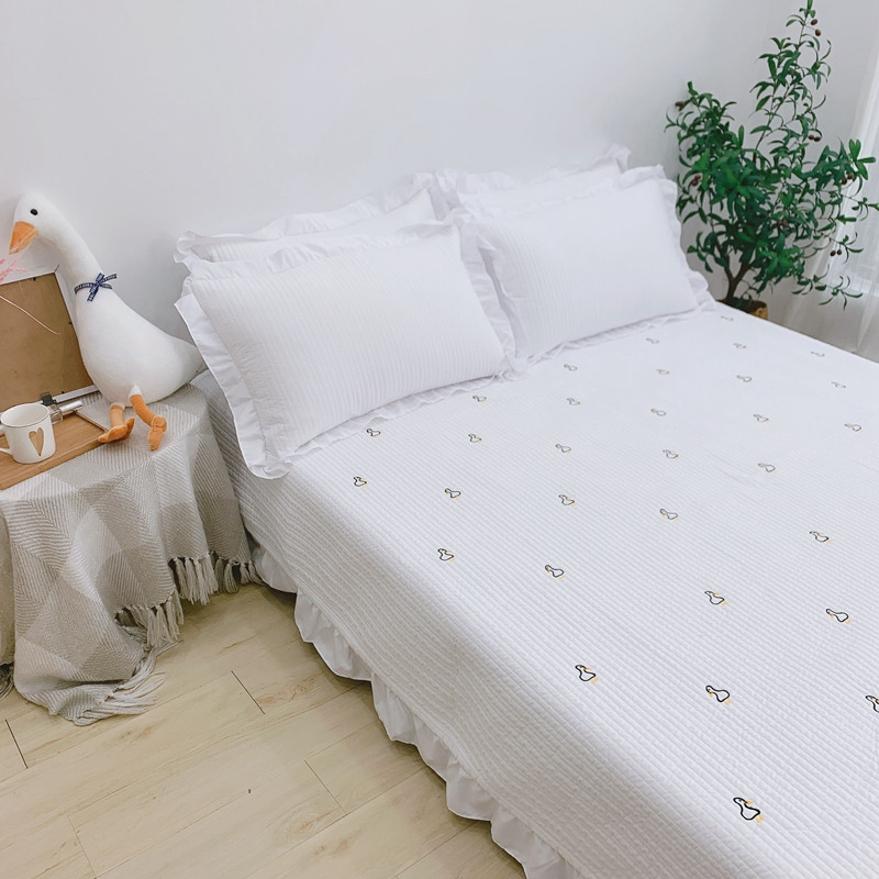 漫调 2022新款ins风韩版床盖三件套 加油鸭白