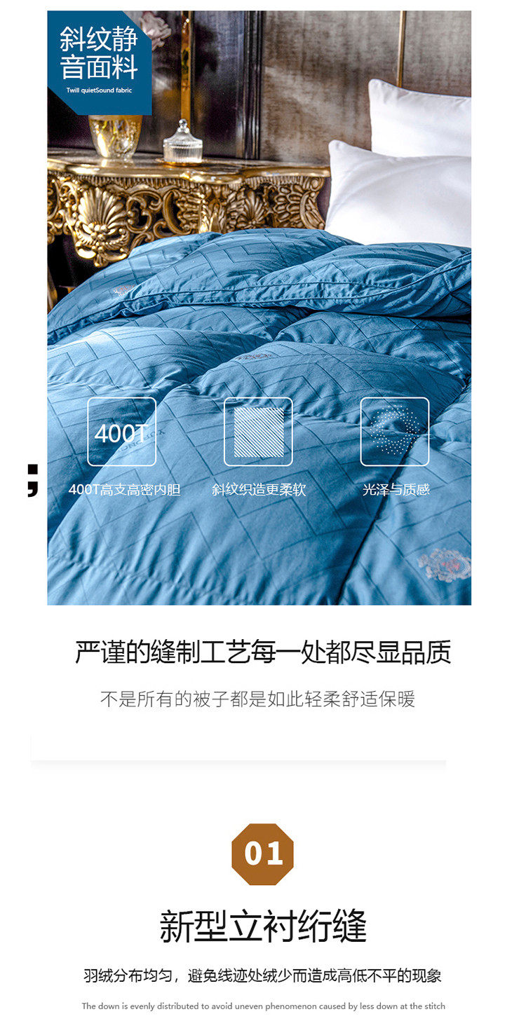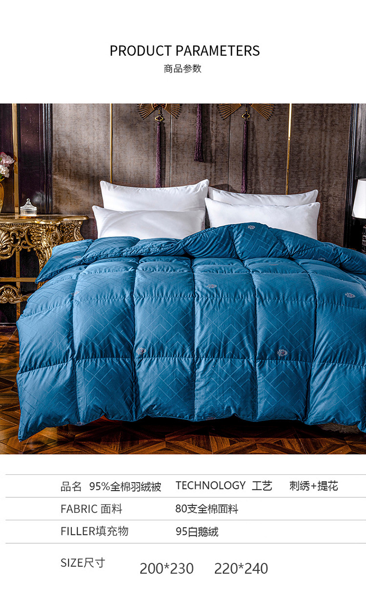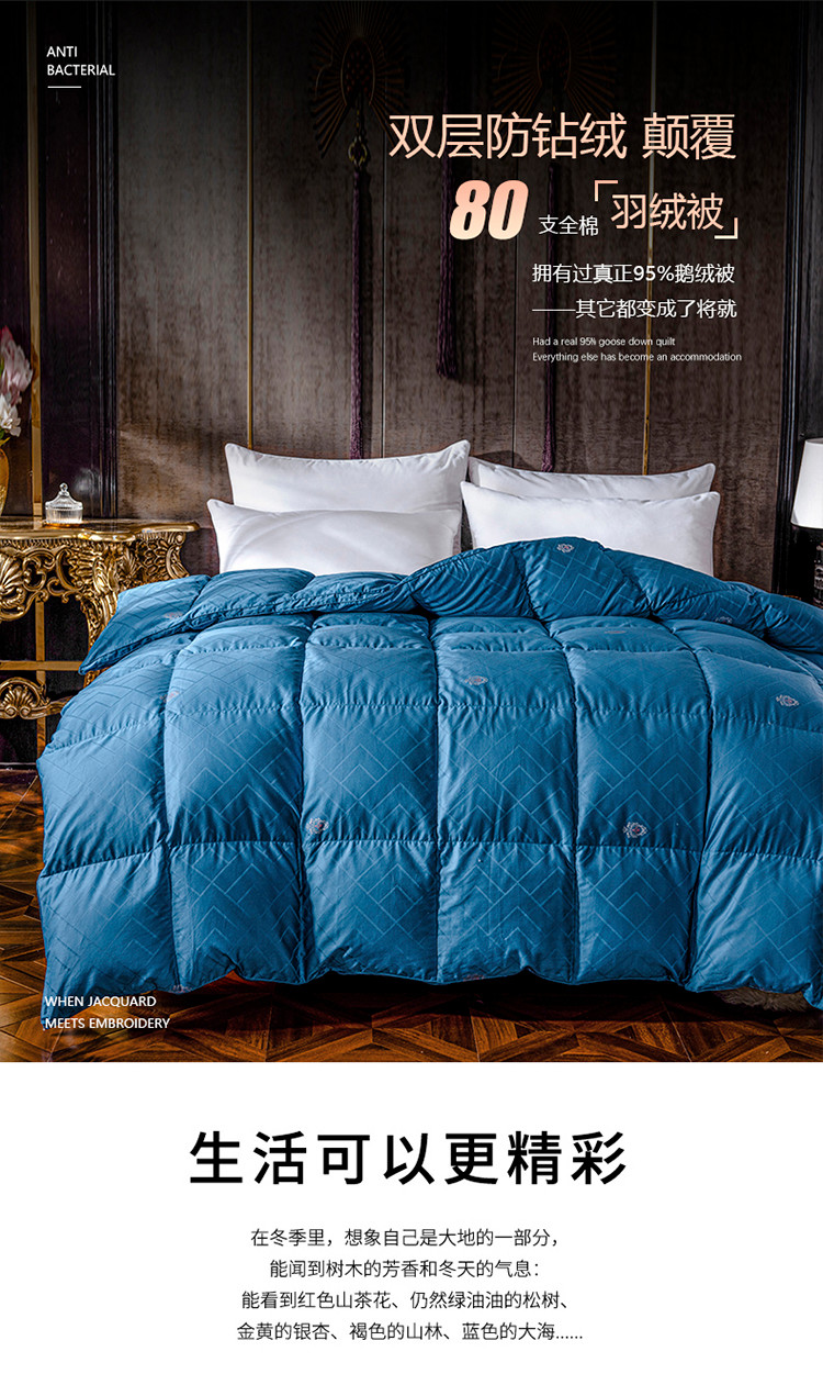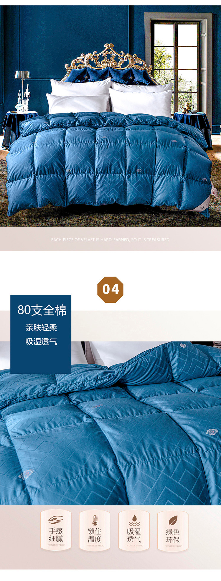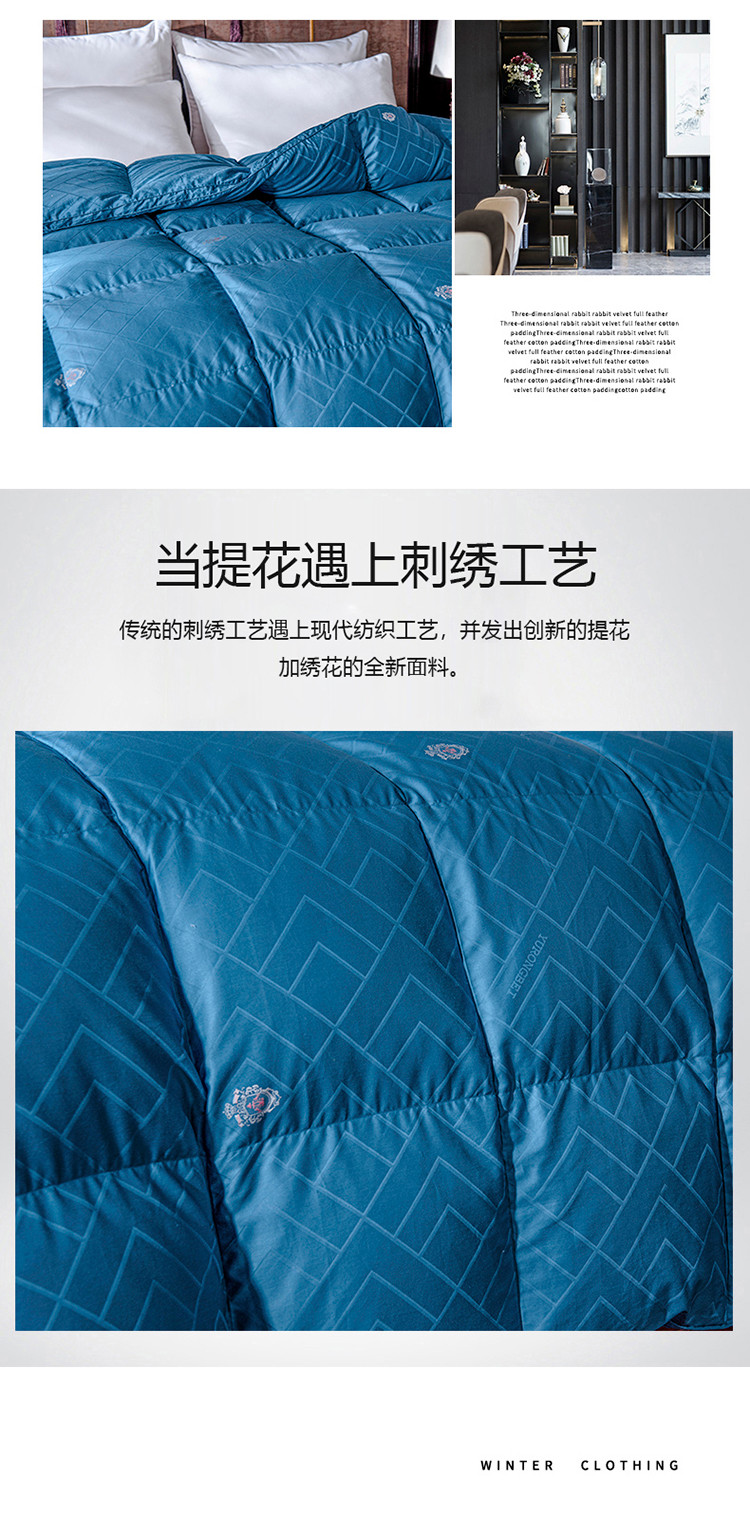 商品名称:绒研羽绒 2025新款苏绣提花立体鹅绒被 宝石蓝